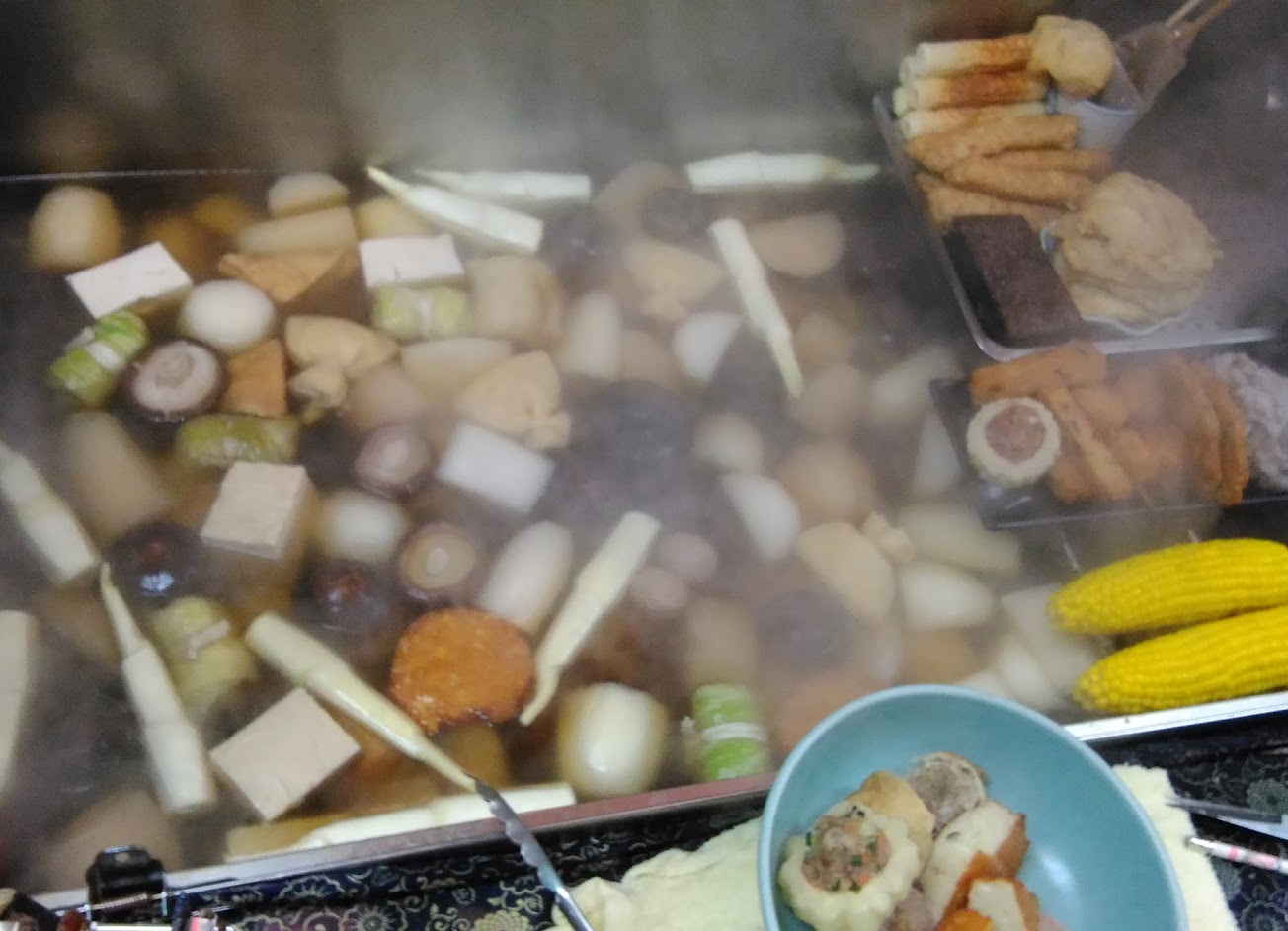 很少吃到關東煮的玉米是甜又嫩的,通常都是沒什麼味道又老,茶碗蒸好吃,鍋燒麵清淡的湯頭,麵條吸滿飽飽的湯汁,好吃,雖然料不多,咖哩有微微的辣,肉也燉得很夠味、軟爛!