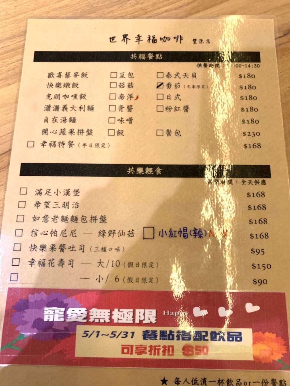 2024最新在地推薦餐廳的菜單_世界幸福咖啡豐原店的菜單、圖片