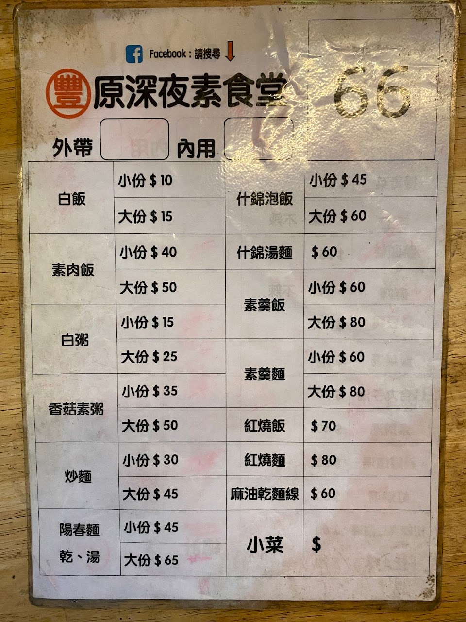 豐原當地素食版深夜食堂,也可以說是餐車型的清粥小菜。餐點清爽豐富,選擇性多,也為半夜肚子餓的人提供另一個選擇。