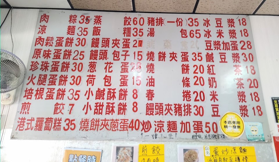 另外蛋餅油條與肉粽、鍋貼也是熱門菜色之一,