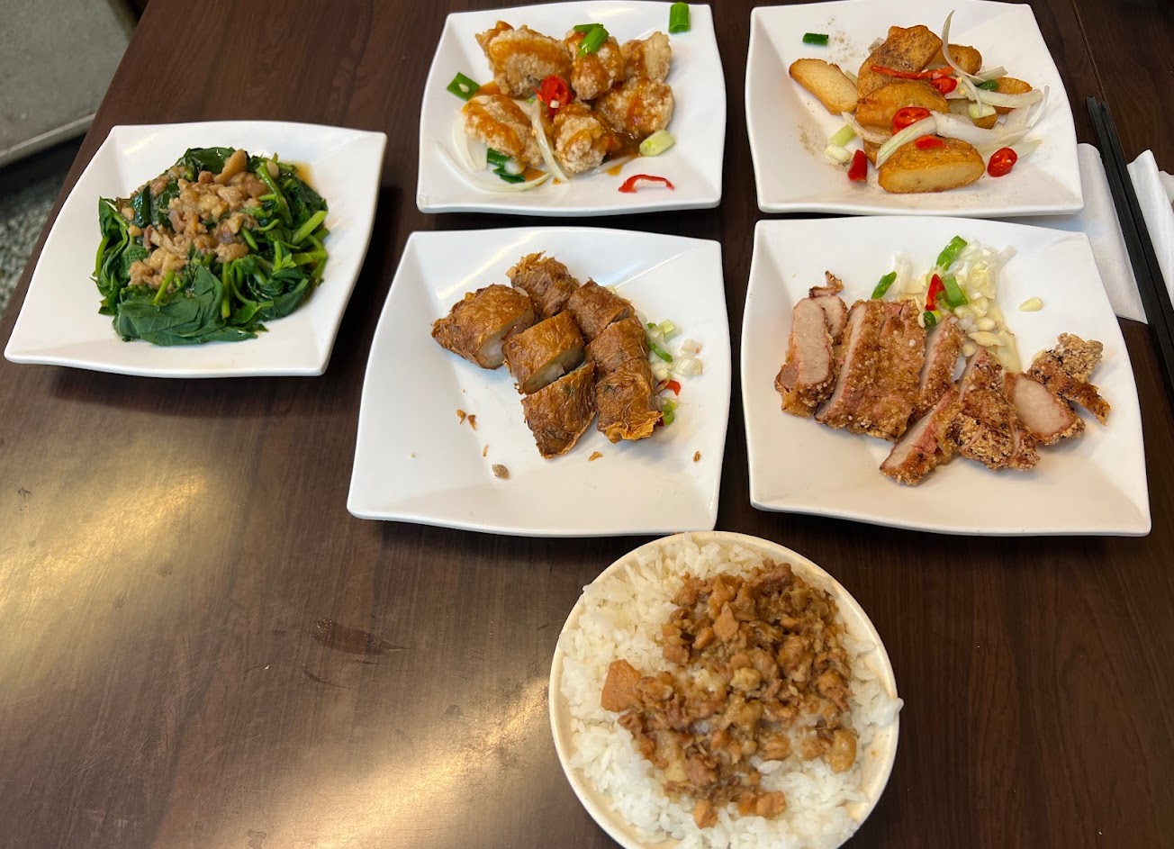 五菜+一大肉燥飯+一小肉燥飯共$345