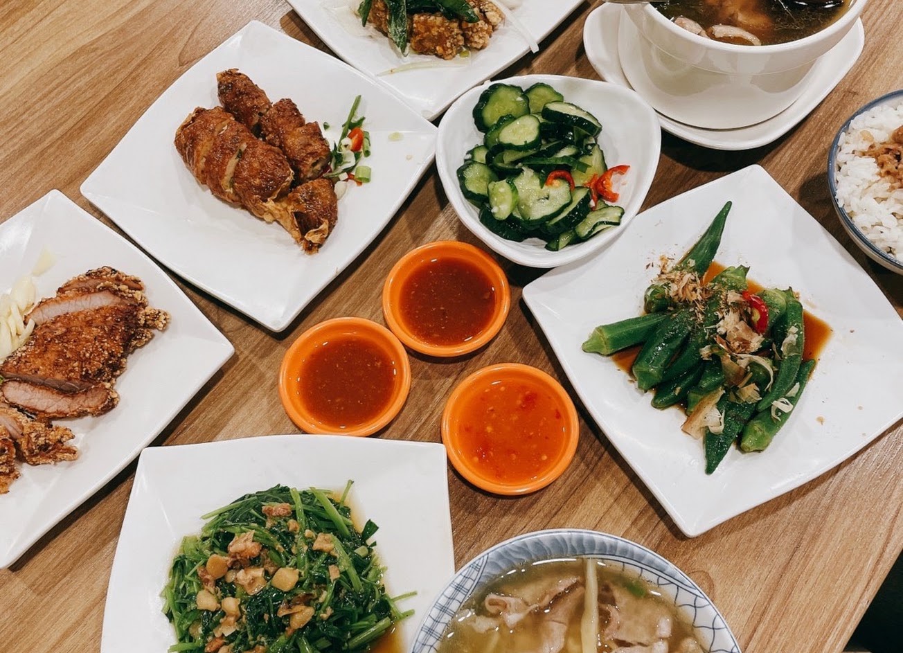 滿滿的一桌每一樣都好吃!明亮的用餐環境