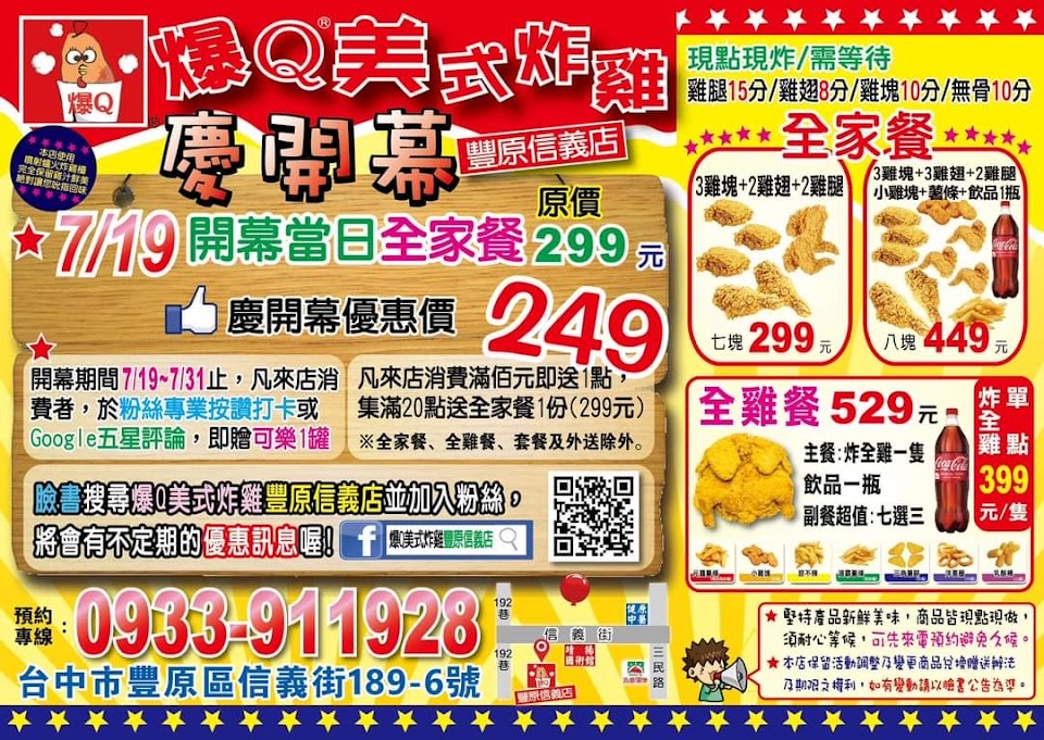 2024最新在地推薦餐廳的菜單_爆Q美式炸雞-豐原信義店-豐原必吃雞排|熱門炸物|炸物推薦|人氣雞排|必吃宵夜|在地推薦炸物的菜單、圖片