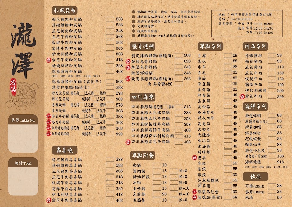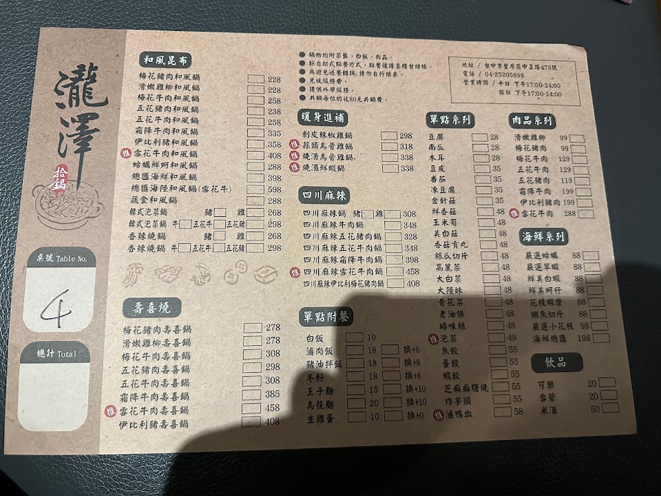 2024最新在地推薦餐廳的菜單_瀧澤拾鍋的菜單、圖片