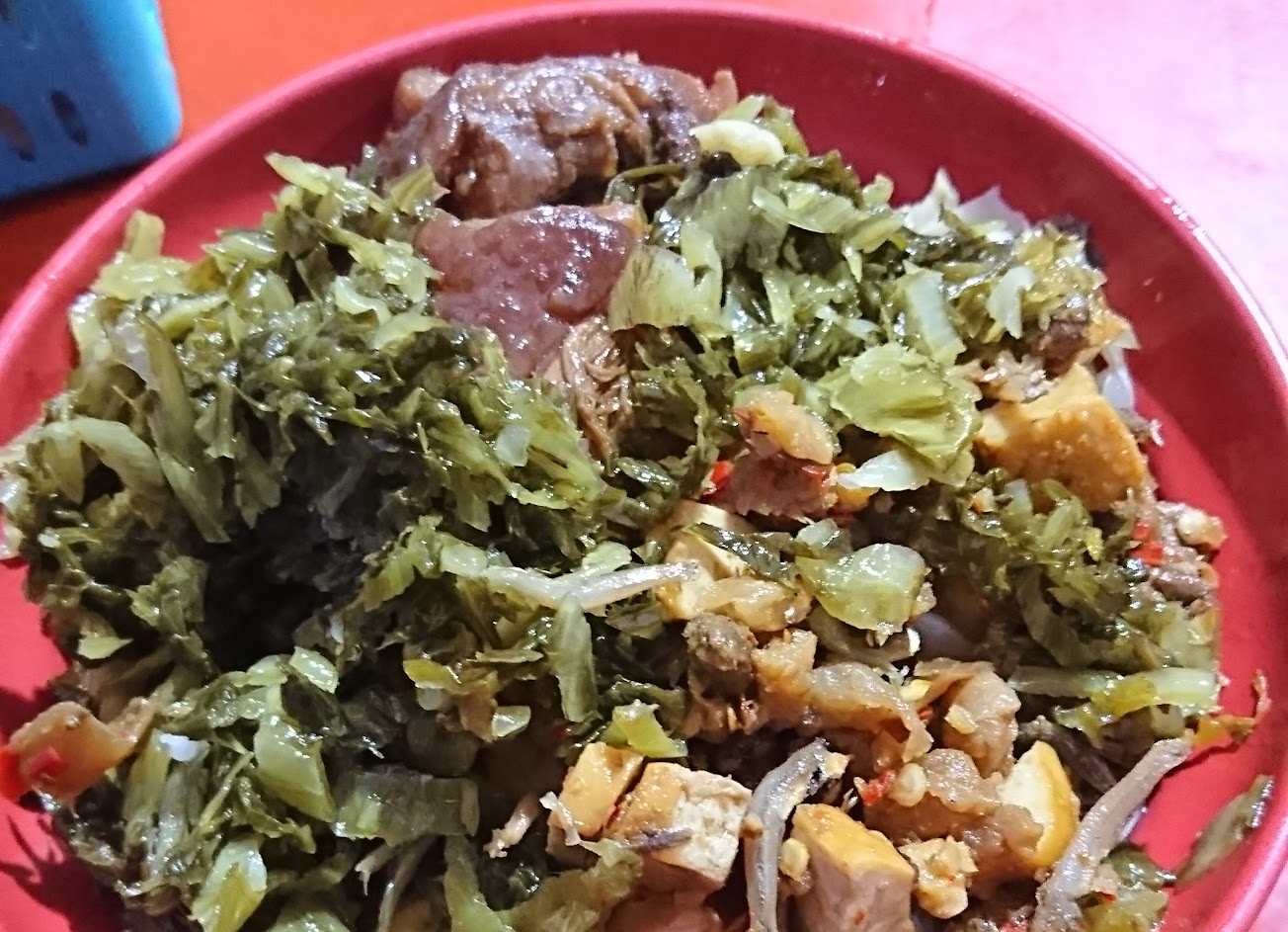 用餐時間生意很好,價位親民,店家自製的辣味小菜和鹹菜都免費供應。個人覺得腳庫飯的肉質口感不夠讓人驚艷,吃完一直感到口渴,肝連湯的肉也稍韌,須咬很久。
