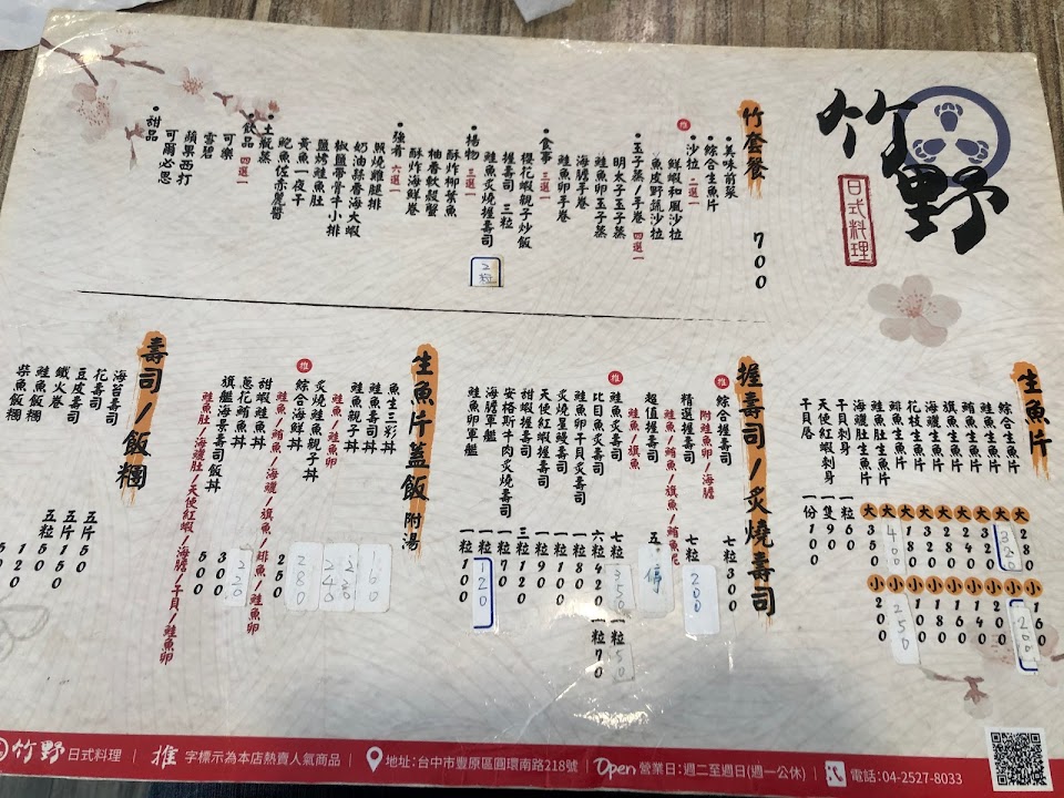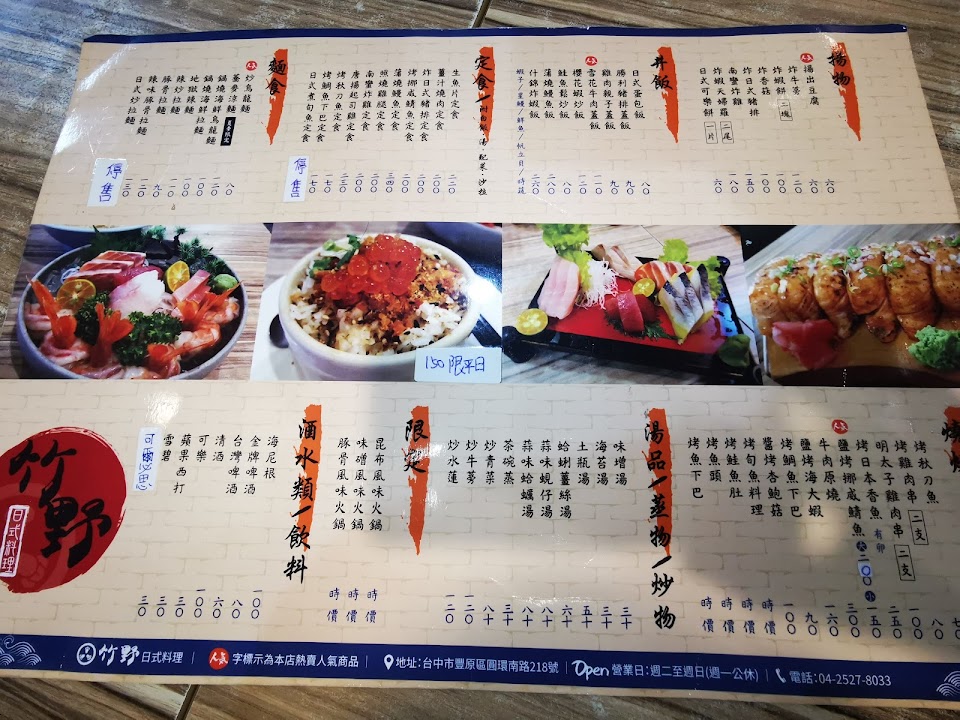 2024最新在地推薦餐廳的菜單_竹野日本料理的菜單、圖片