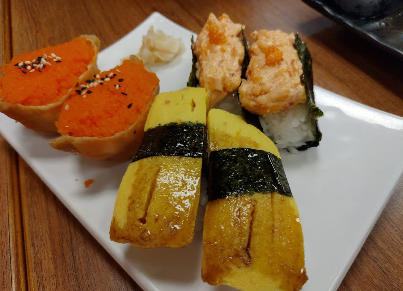 蝦卵手捲好吃,味增湯也不錯。價位算平價。就是位置小了點,服務也還好。
