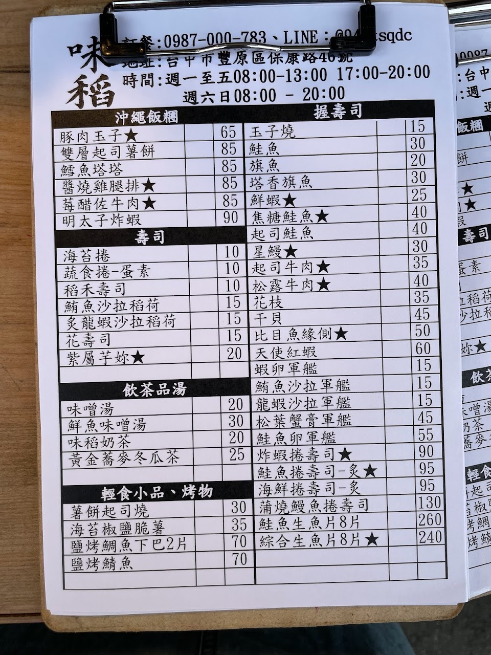 2024最新在地推薦餐廳的菜單_味稻日式料理坊(壽司.沖繩飯糰.握壽司)的菜單、圖片