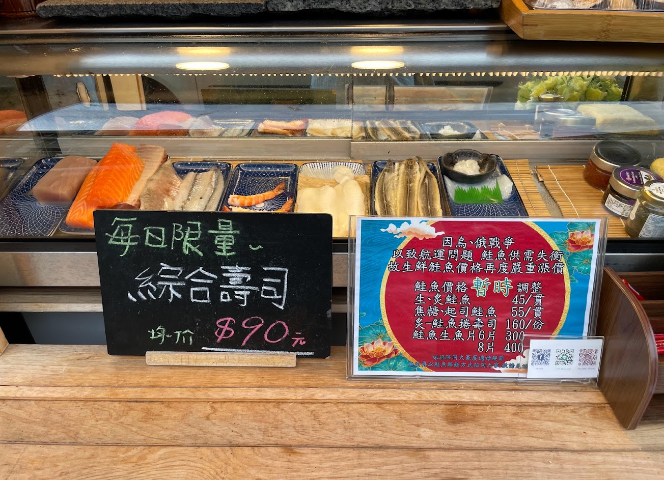 看到別人分享就對沖繩飯糰很有興趣!!早上6:30就開的日式料理小店,鮭魚捲壽司-炙燒這樣厚厚又大片的鮭魚一份才95元???