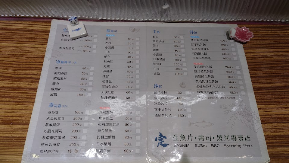 2024最新在地推薦餐廳的菜單_定日式料理。生魚片。握壽司。燒烤專賣店的菜單、圖片