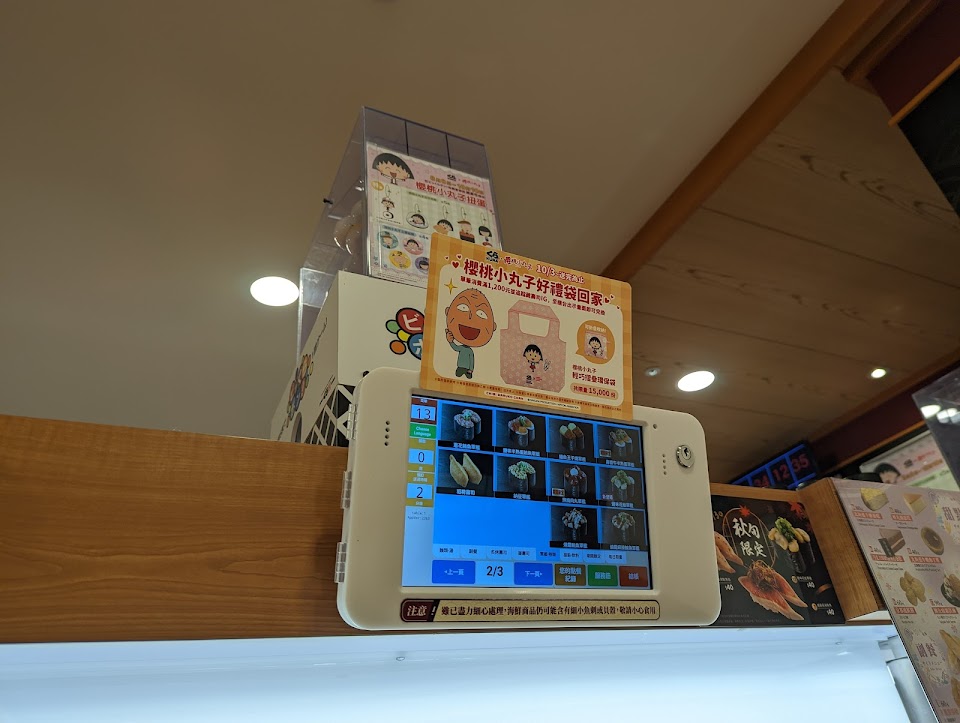 前幾週初次嚐鮮還不錯壽司吃完,盤子可以馬上丟至盤子的回收處,還有柯南扭蛋活動不用佔桌上空間?嗑了很多盤?
