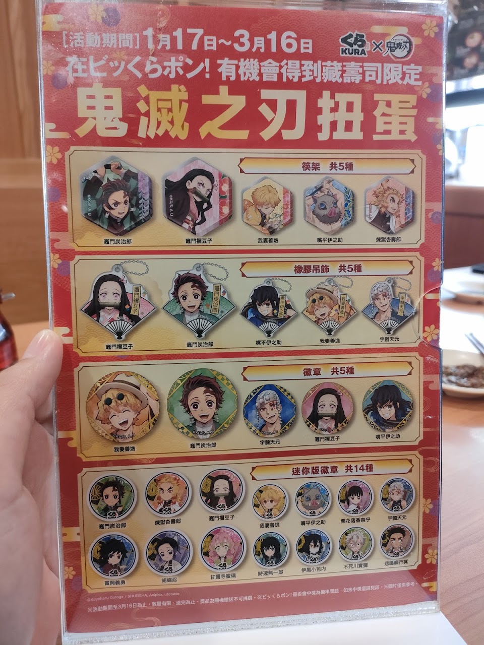 今日可能因為是下雨天較少客人,約莫18:00進入,本次是第一次藏壽司消費,在第一個5盤即中了扭蛋!雖然後面的都沒有中,但也是不錯的體驗手機點餐滿200也可以扭蛋一次,不過有限定商品才會計入手機轉蛋。