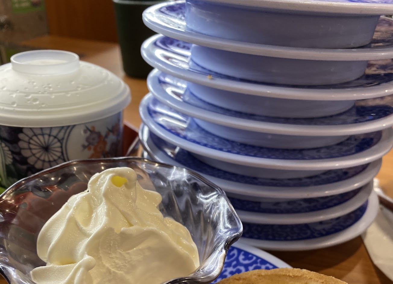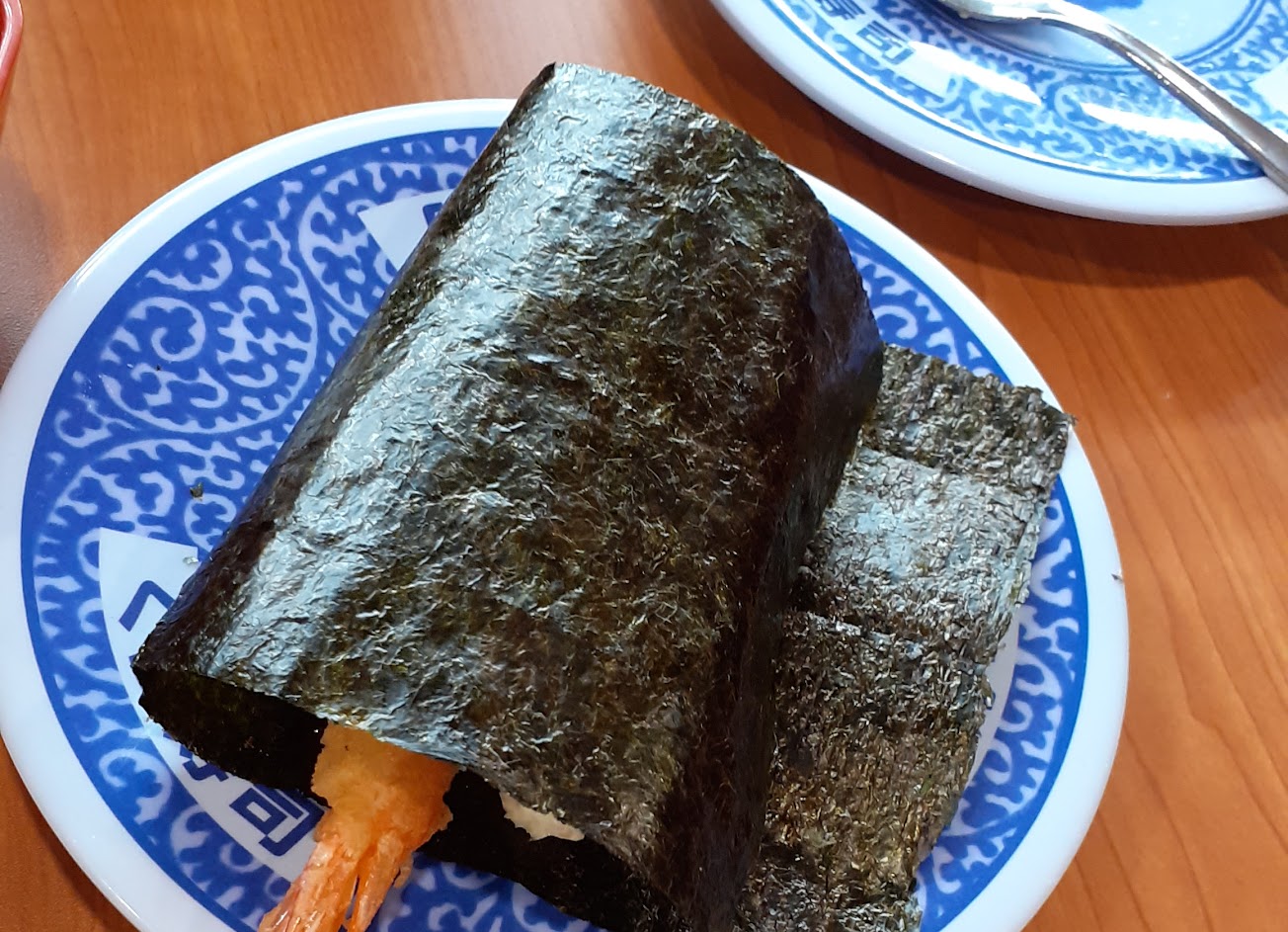 用料新鮮,我覺得壽司的米飯尤其好吃;推薦炸花枝手卷和甜點,特別又美味。小朋友很興奮,吃五盤可以玩一次扭蛋,滿一千元,還送了鬼滅之刃的限量文件夾,是個老少咸宜的用餐場所。缺點是人太多了,一定需要訂位,而且座位有一點點小。