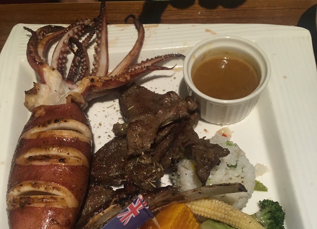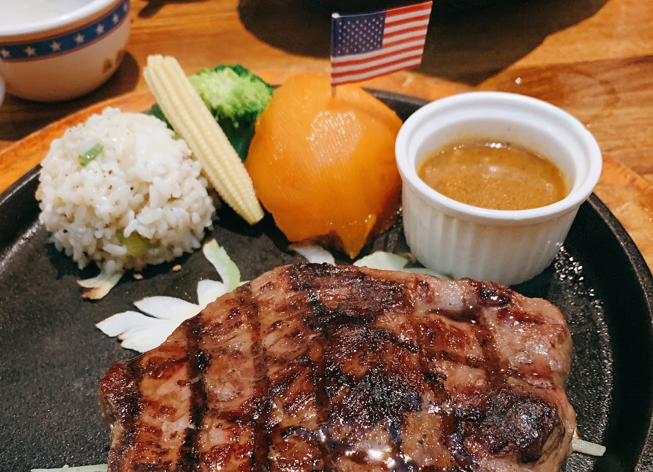 裝潢跟氣氛輕鬆自在還帶有濃厚美國奔放粗曠的氣息,牛肉比以往小一些價格有調整過,低消兩百多起到幾百的價位都有,副餐水果品質都不錯,濃湯也穩定偶爾失格而已(太鹹),還有停車不便,最後別點羊排,有時忙碌一下就冷掉很難食用(帶小孩的父母切記)。