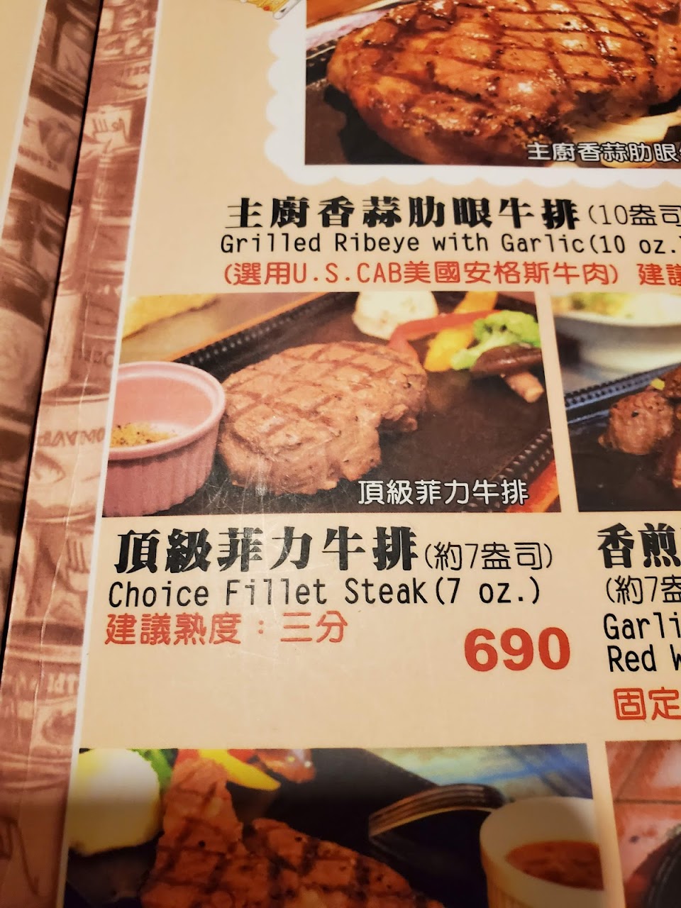 點了價位較高的牛排,牛排筋很多,有油腥味,因為價位也不低,不想浪費,勉強吃到最後1/3真的沒辦法再吃下去