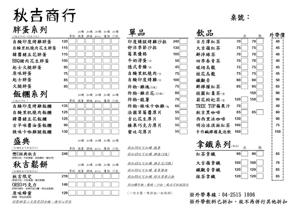 2024最新在地推薦餐廳的菜單_秋吉商行的菜單、圖片
