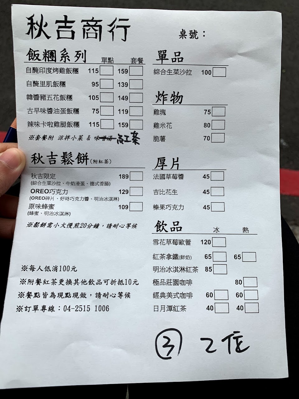 餐點:2