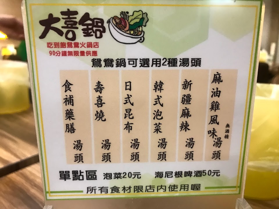 1.本來要去肉×生吃烤肉不過剛剛漲價,改來大喜鍋也是剛剛漲價,果然要吃什麼店就應該趕快去吃,拖到後來就漲價了!但是大喜鍋平日午餐290元吃到飽,還是佛心來的,那些高級火鍋店起跳價已經超越290元了!
