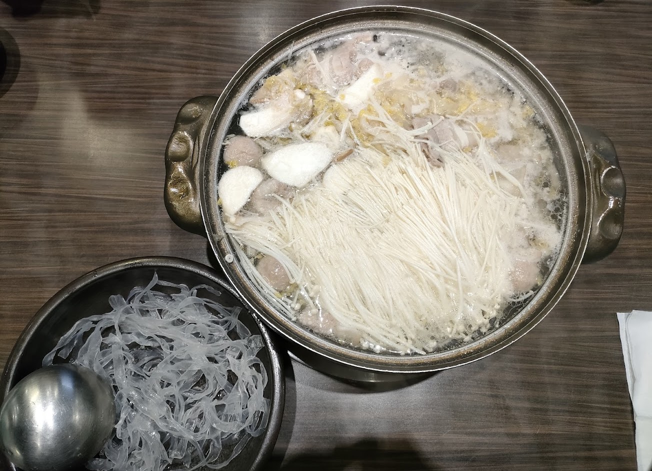 而酸菜白肉火鍋也還不錯,只是對我而言酸了些,若是對味素非常敏感的,建議就點現炒就好。