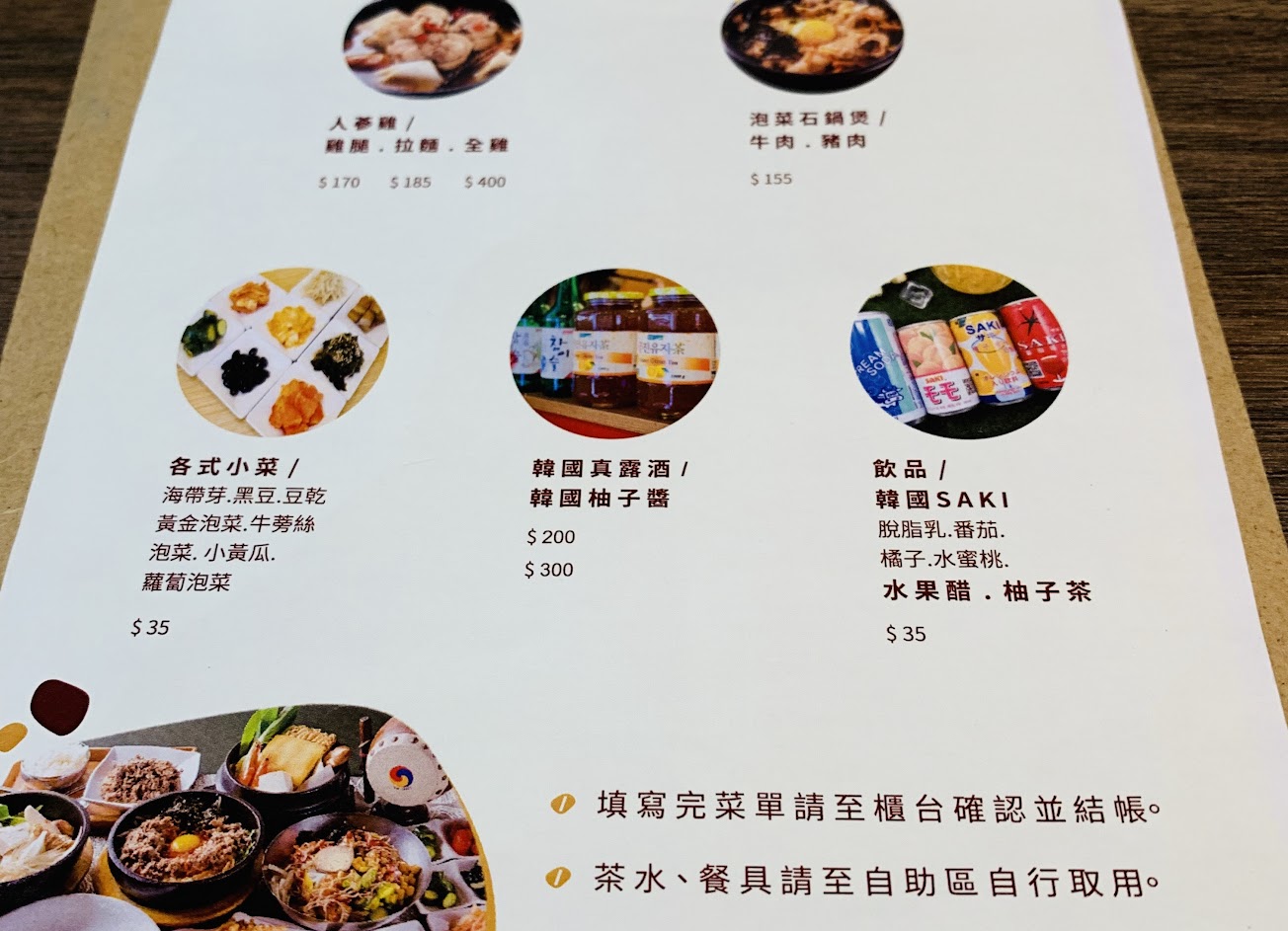 有點台式的韓式料理,服務很好,環境不錯,擦桌也用酒精,廁所也乾淨,只有機車專用停車場,但個人吃起來覺得很普通,不過還是推薦來嚐鮮看看