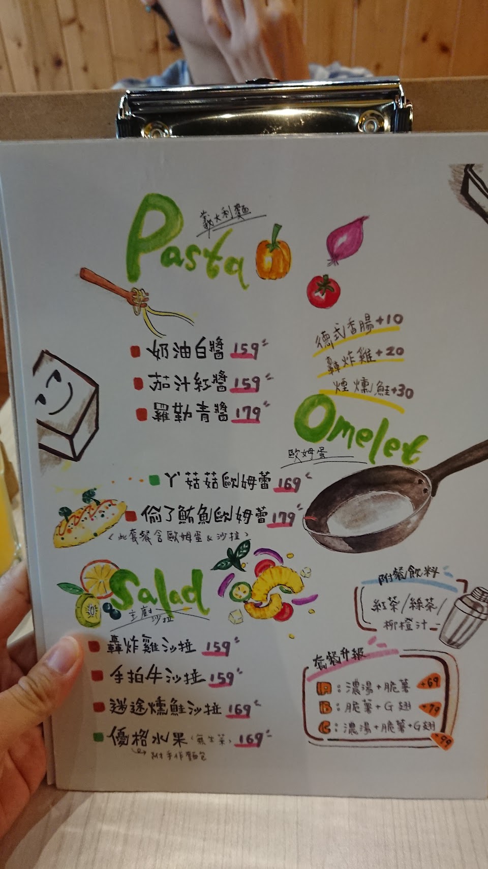 這次點了三款義大利麵,都好吃,加點的套餐也不錯,這次在入口的第一桌,因桌子較低,用起餐來要點不太舒服,椅子還不錯,是可以推薦的早午餐,櫃檯的店員跟人的對話有點冷,一進門就叫你自己拿旁邊的菜單,我沒來過怎麼知道你們的點餐程序是怎樣,希望服務員服務的方式及流程可以修正一下