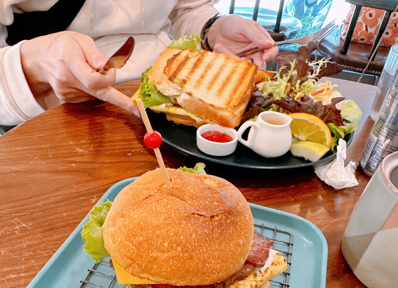 路過豐原找到這間早午餐,沒想到餐點好看又好吃? 點的義式雞腿沙拉不管是雞腿、帶有起司的炒蛋、烤麵包、沙拉的堅果醬或套餐的熱紅茶都好美味,同桌友人也覺得花生牛肉漢堡和帕尼尼套餐很不錯?藍莓乳酪生吐司外表很討喜~