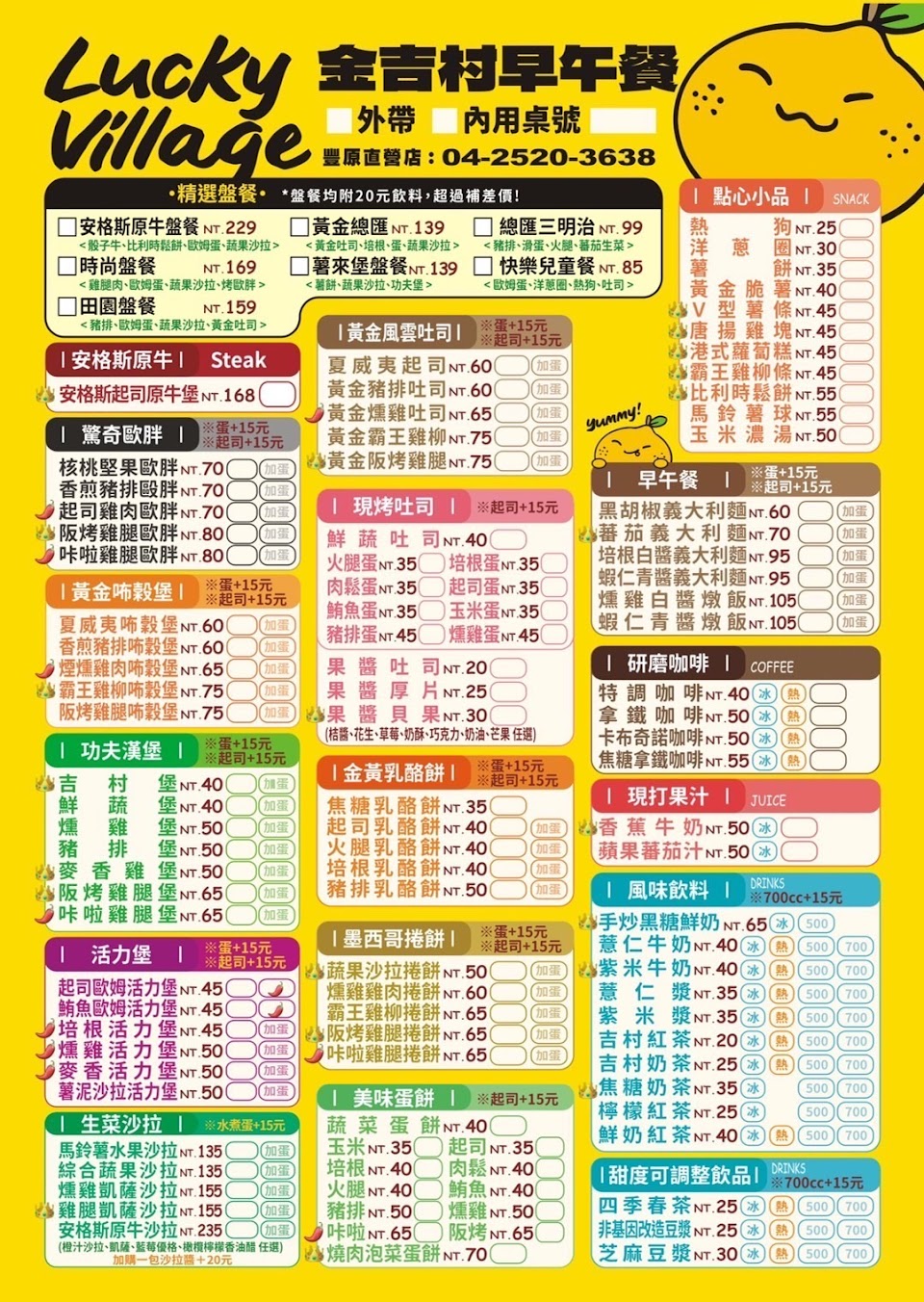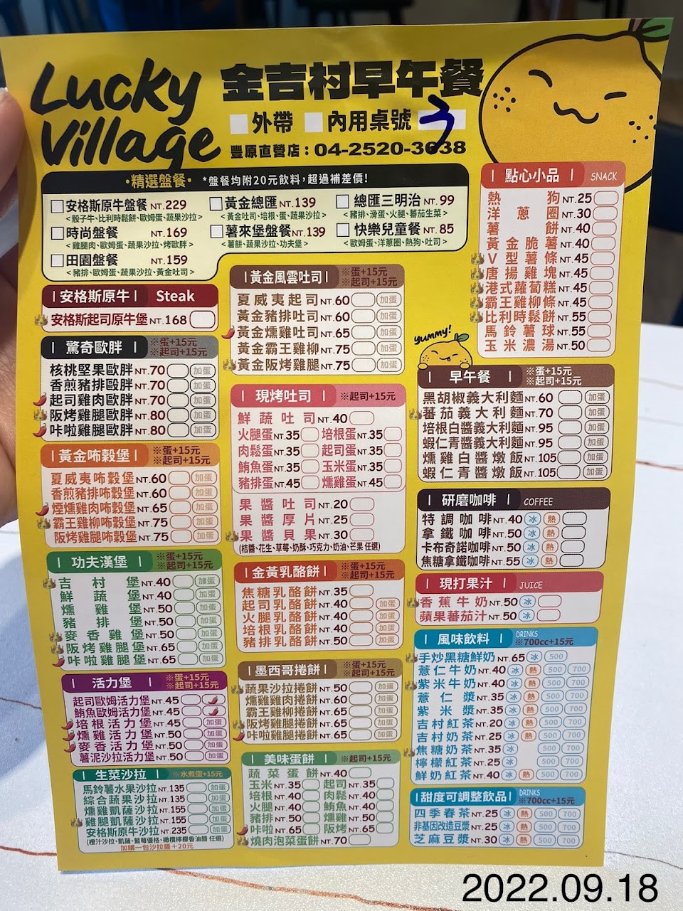 2024最新在地推薦餐廳的菜單_金吉村早午餐 豐原直營店的菜單、圖片
