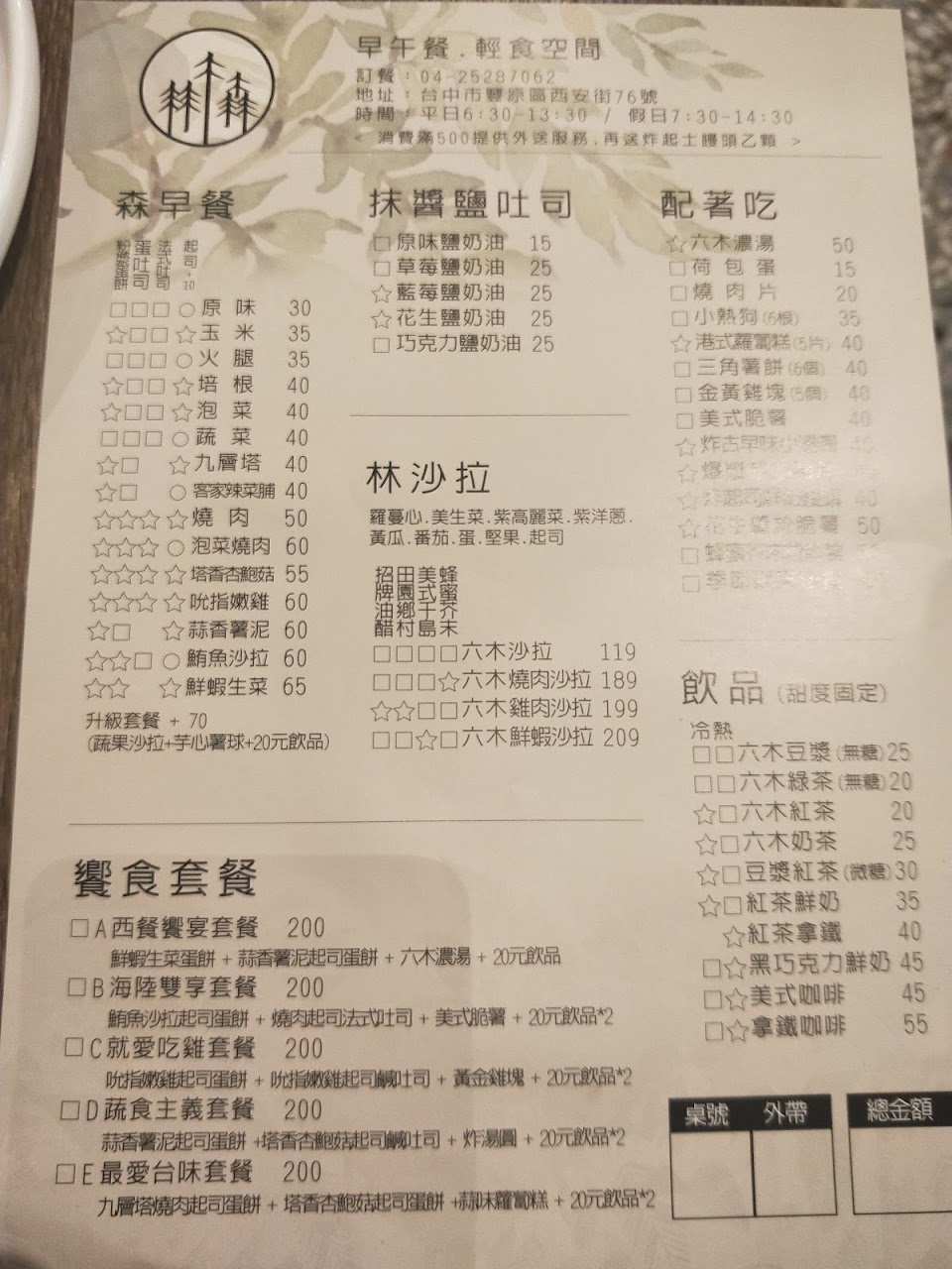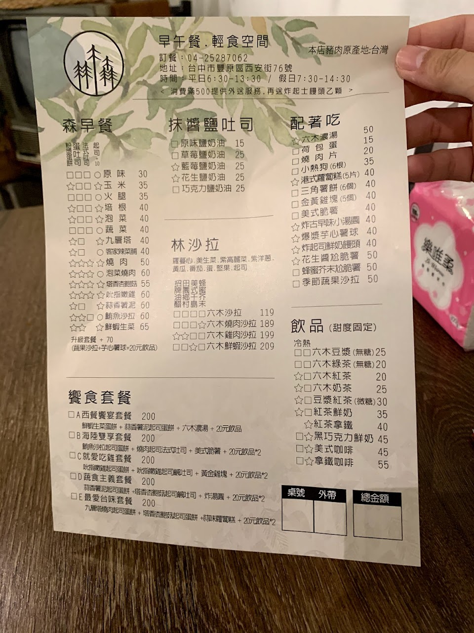 2024最新在地推薦餐廳的菜單_木林森早午餐的菜單、圖片