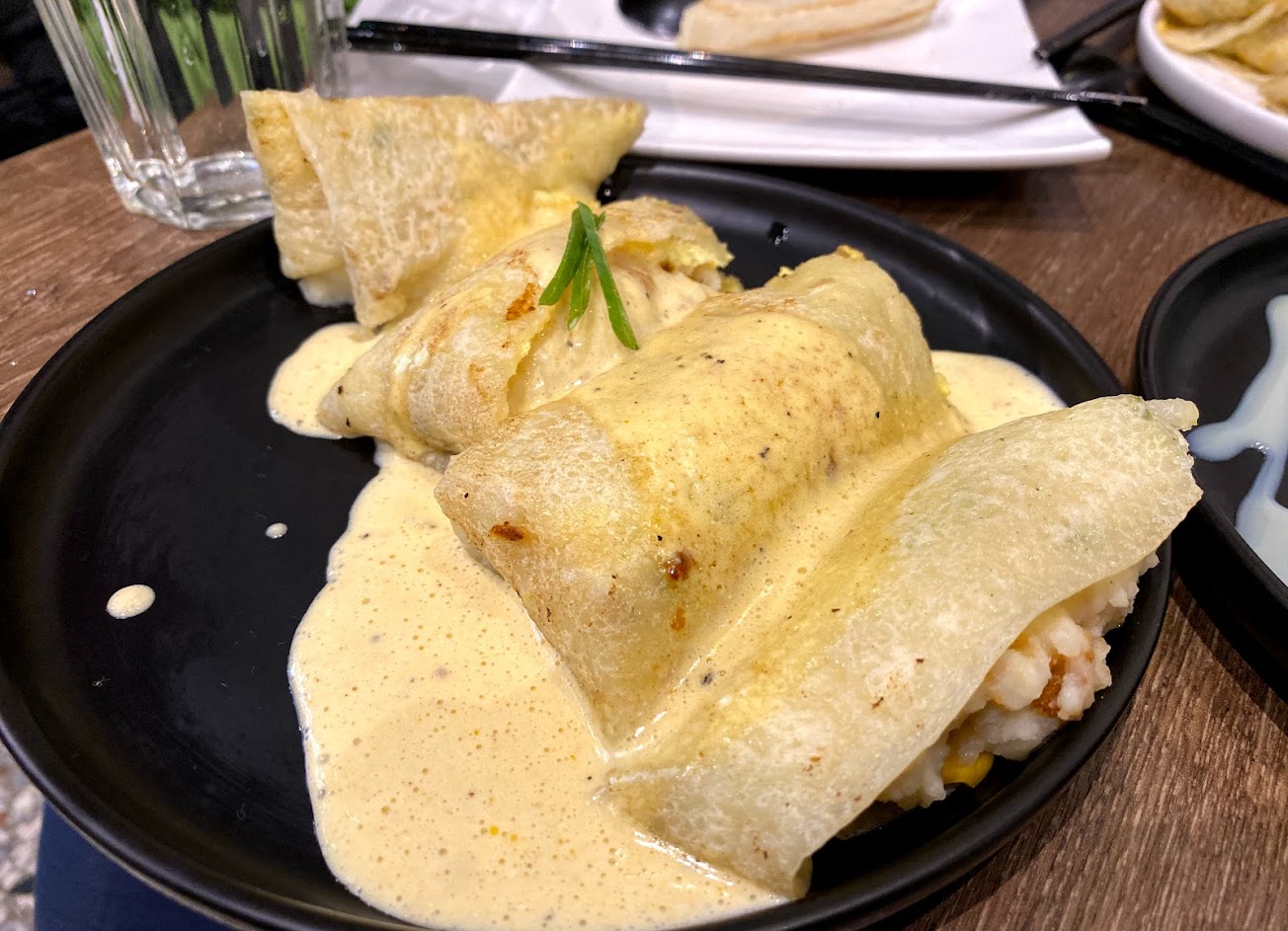 非常為之驚艷,份量比一般大,粉漿皮濕潤Q彈,內餡薯泥搭配起司,外面再淋上起司醬,口感濃郁滑潤,幾乎入口即化,很像在吃稍微固態的濃湯!