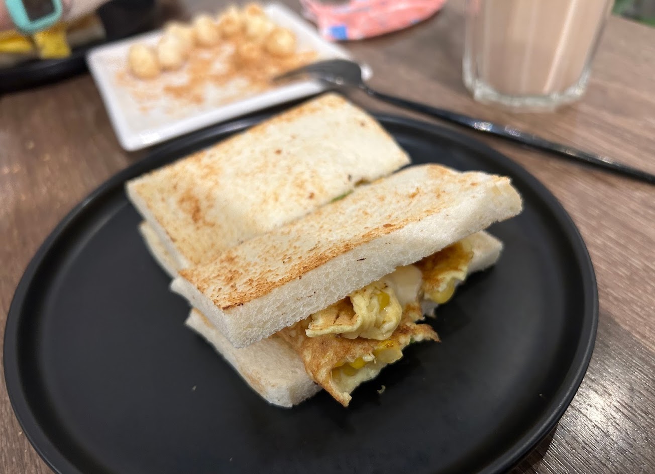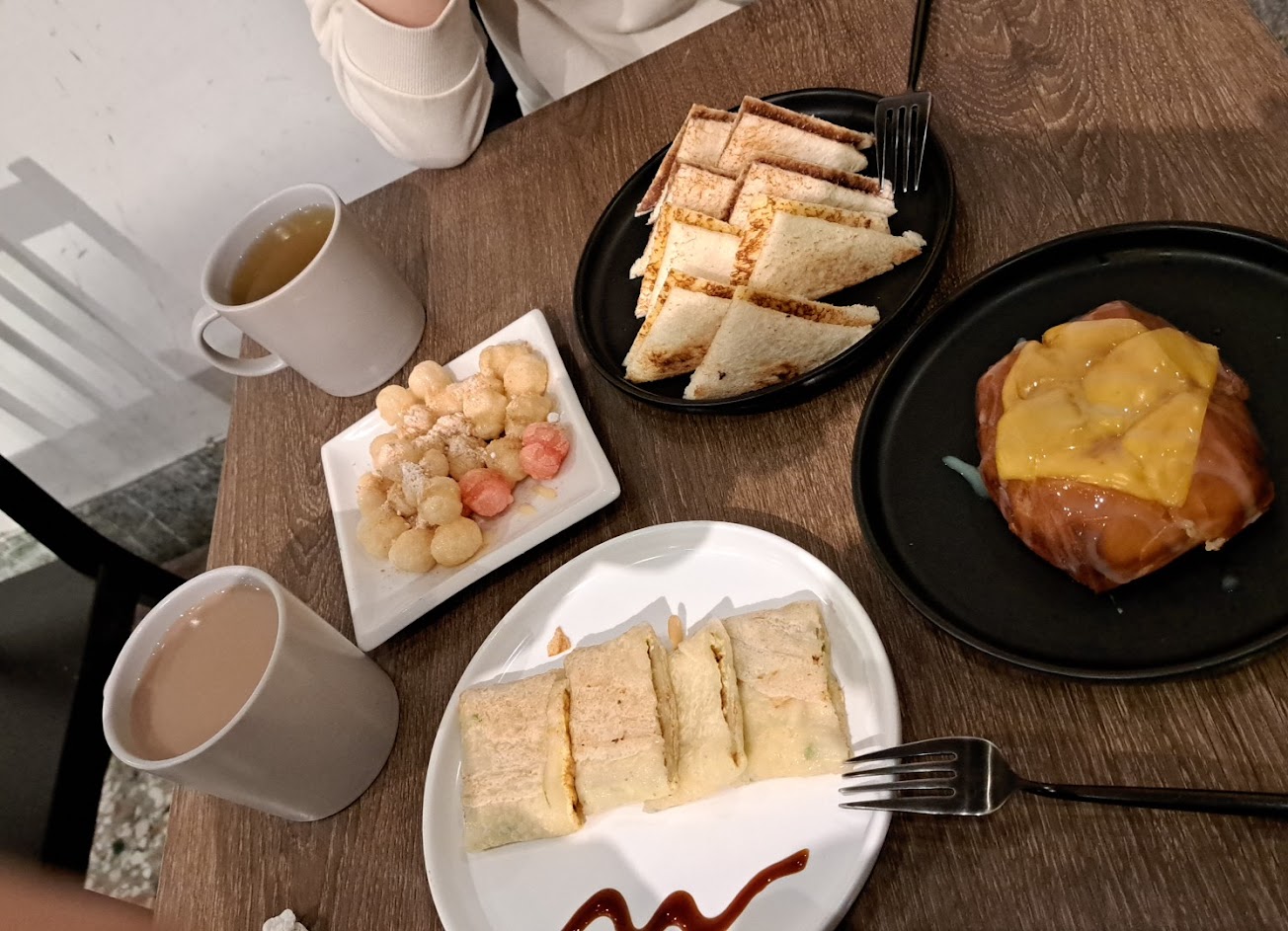 昨天半夜看到這家早午餐,評論不錯選擇也很多樣化營業時間超長,不輸最愛的里歐早餐店,價格偏中高價位份量還可以,因為很多都很想吃看看所以點了不少,目前吃起來都不錯濃湯蠻小碗的有點貴,但是奶香味十足,好像有加洋蔥、玉米、蘑菇,老公喝了也覺得不錯?難得看到早餐店還有賣炸湯圓真的很特別,看到別人說有加鹽巴花生粉少,所以有請店員不要加鹽巴花生粉多一點,銀絲卷煉乳有點少建議可請店員多加點,蒜味薯泥蛋餅很大一份是我看過最大的蛋餅,餅皮是用粉漿做的蒜味夠但不會太搶味,蜂蜜芥末薯條跟鹽味奶油吐司也還不錯,飲料是用瓶裝的雖然沒有分大小罐可惜了點,看了別人的評論似乎內用份量都會比外帶大一點?不過整體來說是我還會再回購的店! …