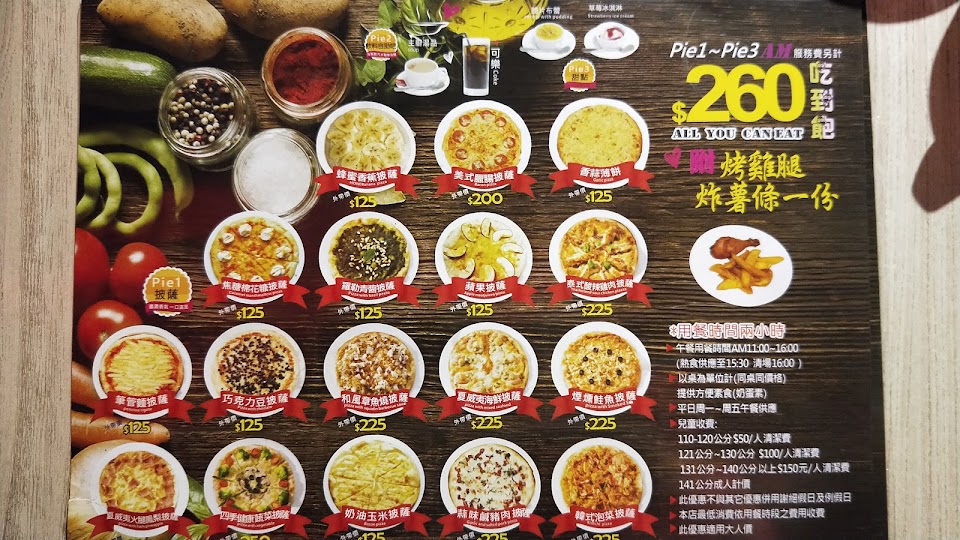 這是主打pizza的吃到飽餐廳,因為吃pizza很容易飽,所以食量小的客人可能會比較不划算吧。