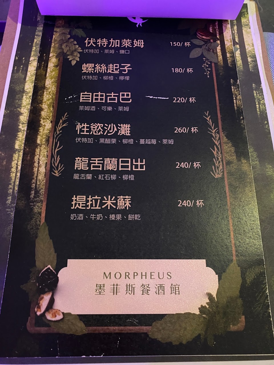 昨日與妹妹到豐原車站旁的墨菲斯餐酒館用餐,餐廳提供了美味的餐點及舒適的用餐環境。因為需要開車,也提供了無酒精飲料,妹妹點了一杯酒,很好喝,但忘記酒名了,下次有到豐原,還會再去的。