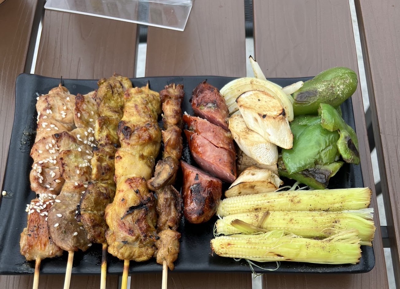 串燒:我只能說骰子牛很入味yyds,牛肉非常有嚼勁,搭配洋蔥烤的很甜可以解膩,雞肉串燒也不錯,把雞肉烤的非常軟很厲害!
