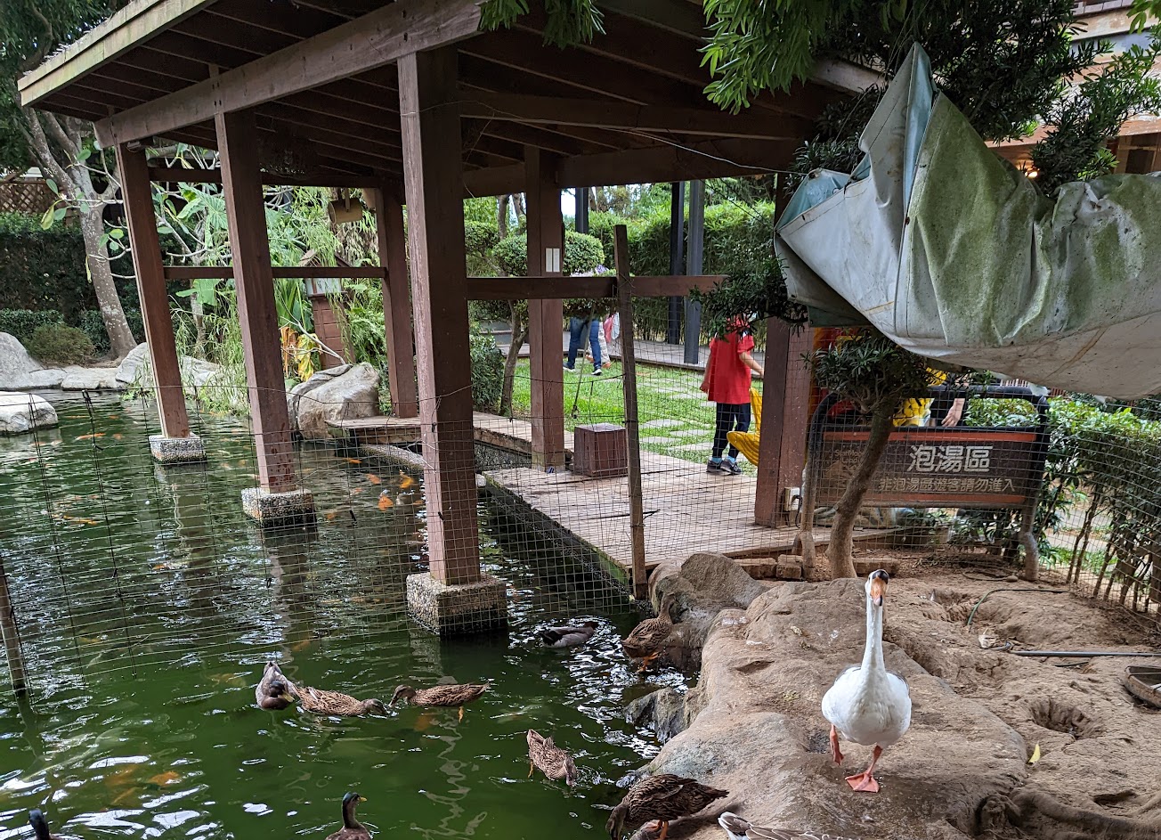 園區有很瘋狂的魚群跟鵝鵝,超級可愛的!還有戲水池跟足湯池,很舒服喔!