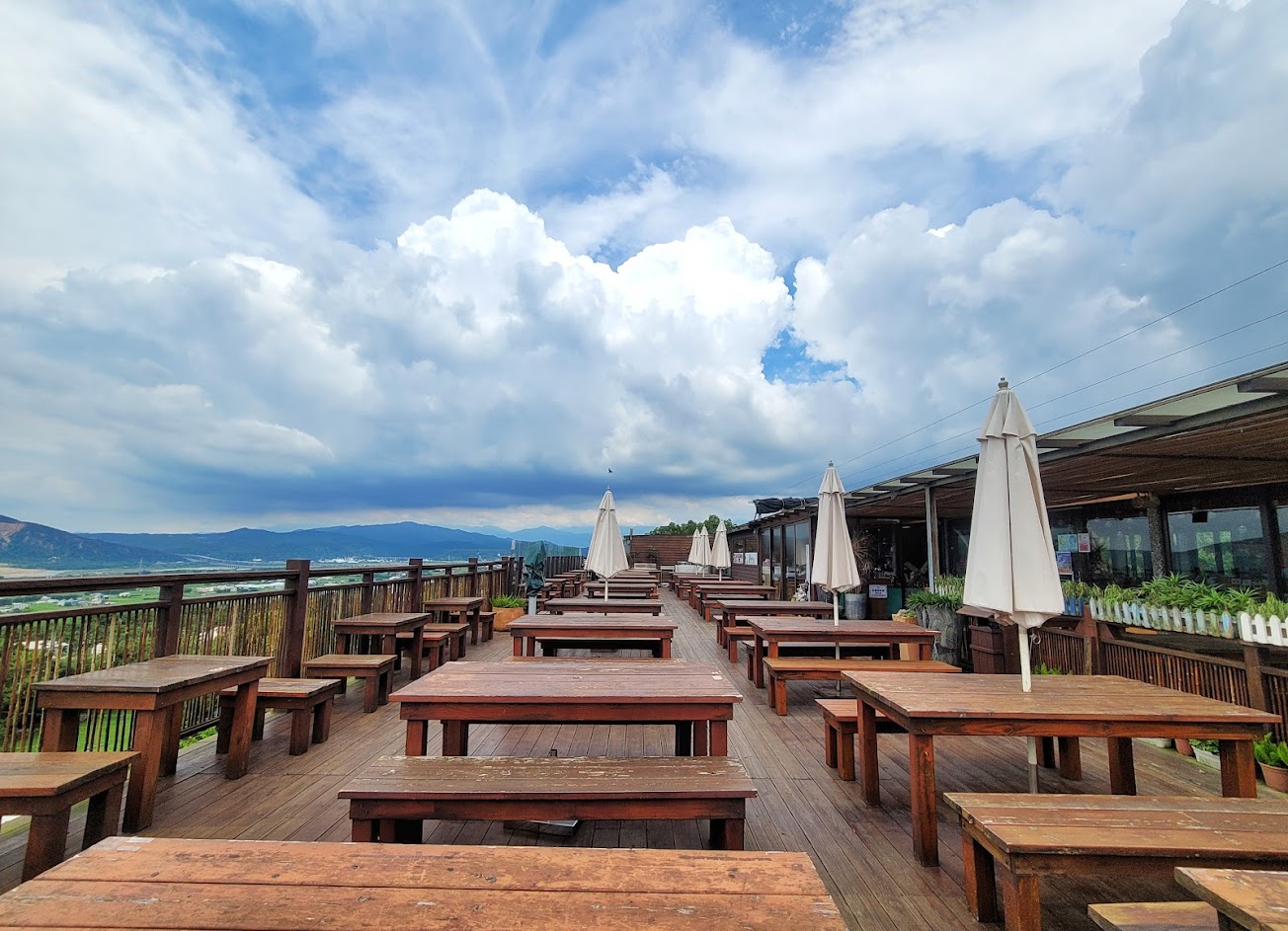 今天特地來探路 二樓用餐區 有分正餐和下午茶時間的區別 一個人或者是一群人都適合來的地方 如果前一天有下雨的話 雨水會把空氣中懸浮粒子帶下 我相信火焰山的景會非常美的
