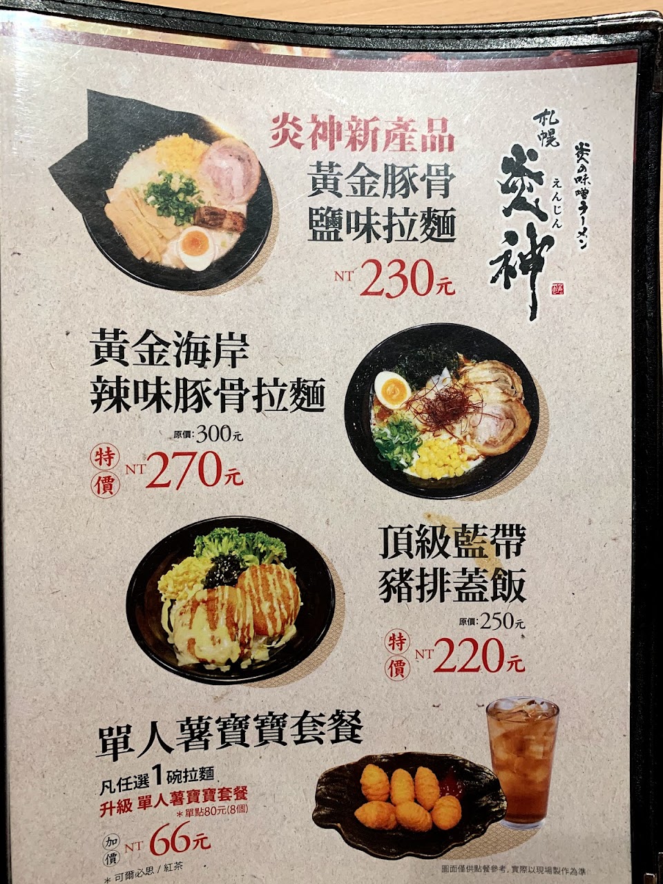 2024最新在地推薦餐廳的菜單_札幌炎神拉麵 台中麗寶店的菜單、圖片