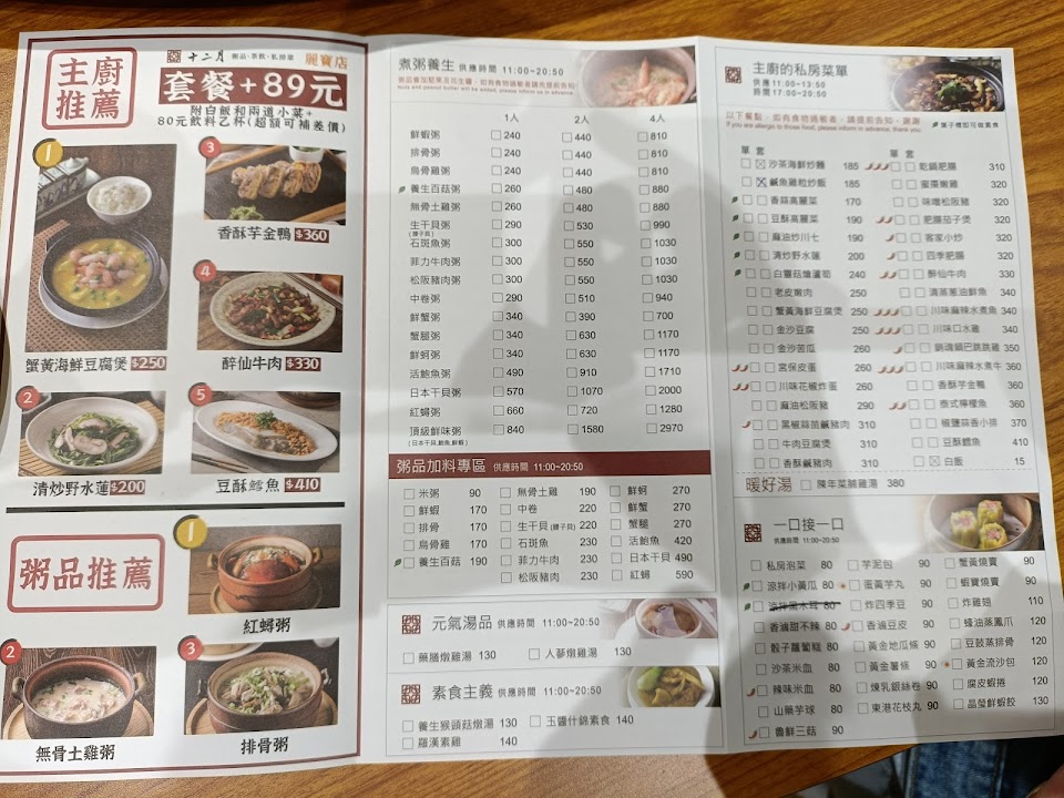 身為十二月熟客,我滿喜歡粥品跟茶點都是主力菜色的菜單!希望服務上也能跟進美味的餐點就更棒了!