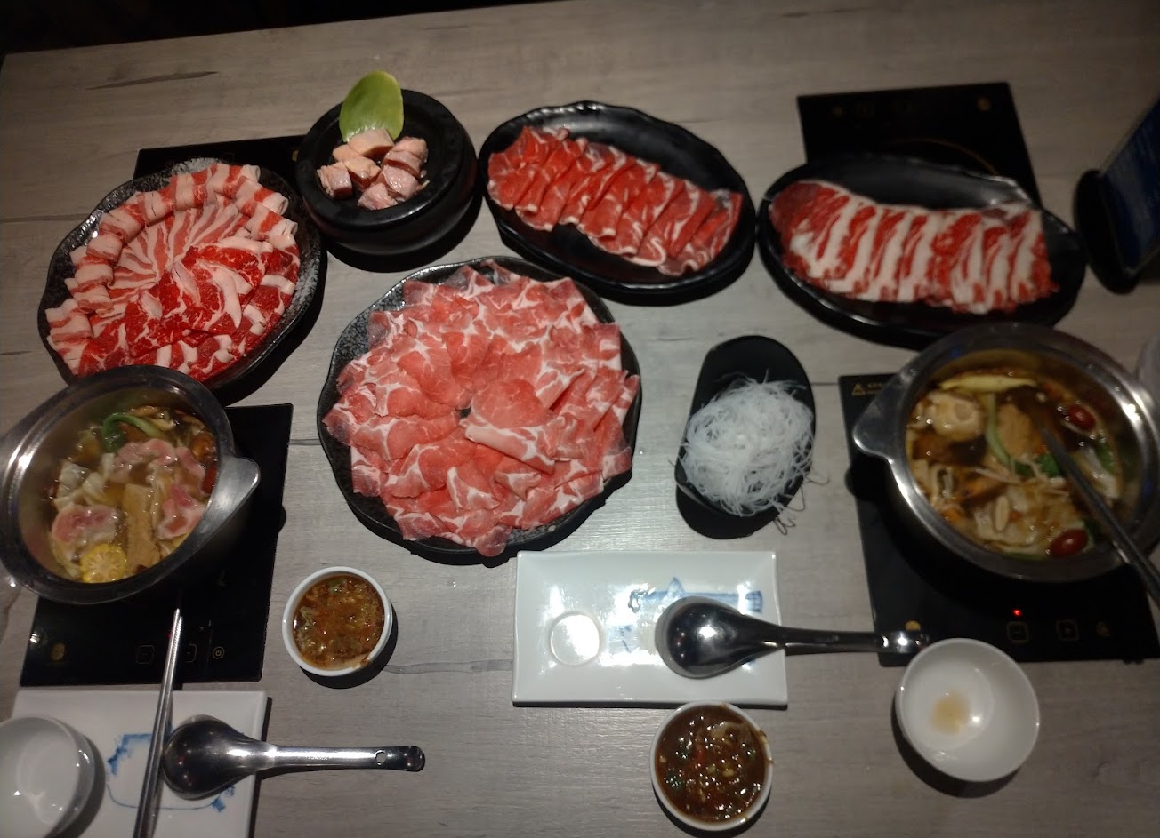 整體環境有一些擁擠,價格偏高一點,額外加點的肉份量有點少,菜盤的菜份量也不多,經典石頭湯頭也是還好,店員會先放鍋,鍋裡面只有洋蔥跟一些配料,然後再倒入湯汁,肉盤的肉算多但是非常的薄,海鮮還算新鮮,醬料吧還不錯,種類非常的多可以選擇,飲料吧除了檸檬紅茶跟熱無糖紅茶外,都是有汽的汽水類,也有提供冰塊,冰淇淋有四種口味,也有提供甜筒,旁邊還提供兒童碗,這一點還不錯,也有提兒童椅,服務方面還算可以