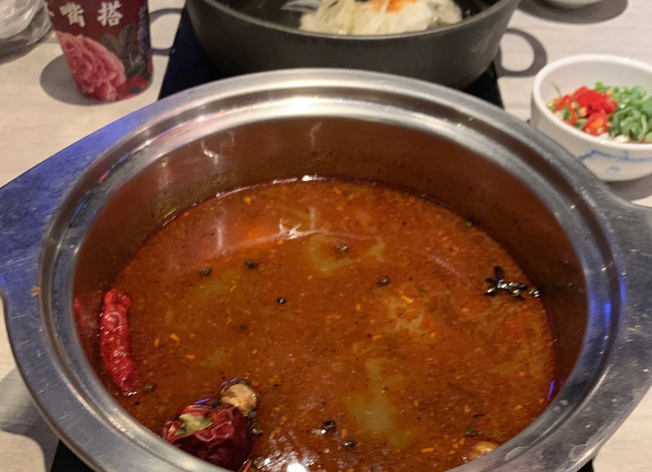 入座後餐桌很髒以外,送來的盤子和湯匙都有殘渣。後來湯底一上桌,鍋子下方黏著一大塊熟食菜渣一起放上電磁爐上。用餐體驗比夜市還差。