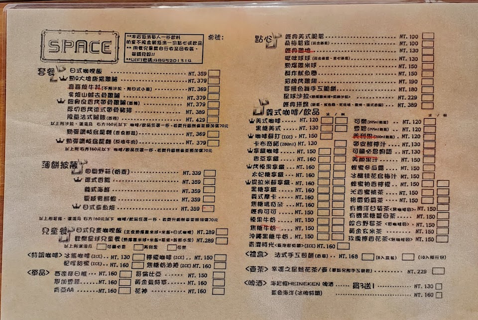 2024最新在地推薦餐廳的菜單_Space cafe 空間咖啡-手作DIY的菜單、圖片