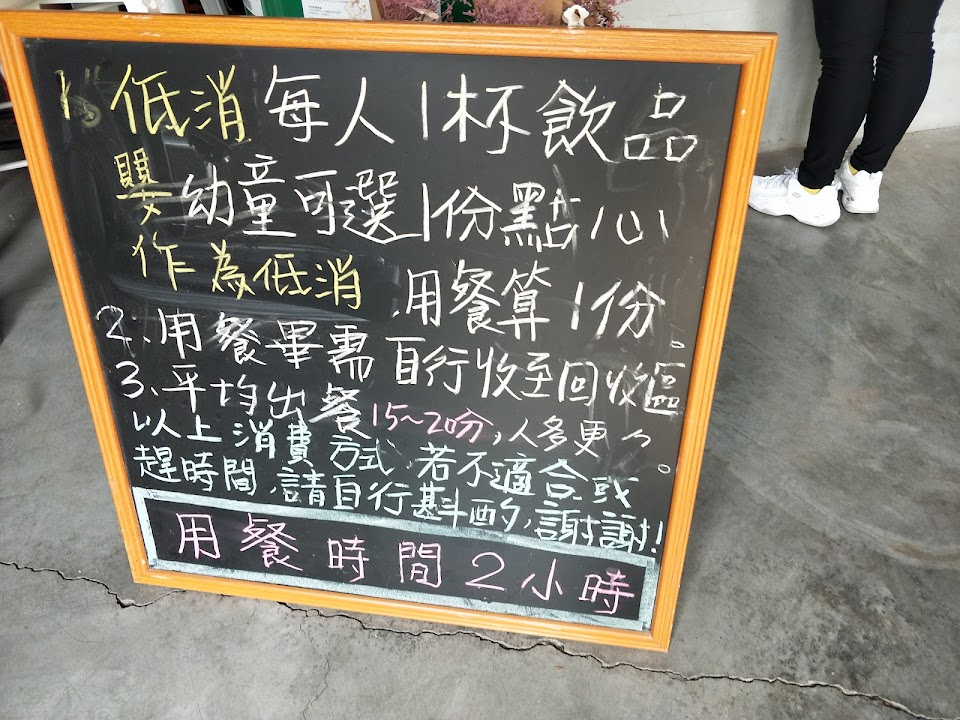 平日有特別預約,人數到一個程度才會營業,主要為例假日才有營業,庭園親子餐廳,內有兒童遊戲區跟哺乳室,後方有洗手間,獨立吸煙區在後方與休憩區隔開,旁邊里長服務處隔壁有專屬停車場,大約可以容納20多台車,套餐約300-500,飲料100-200,低消為一杯飲料,適合家庭聚會。