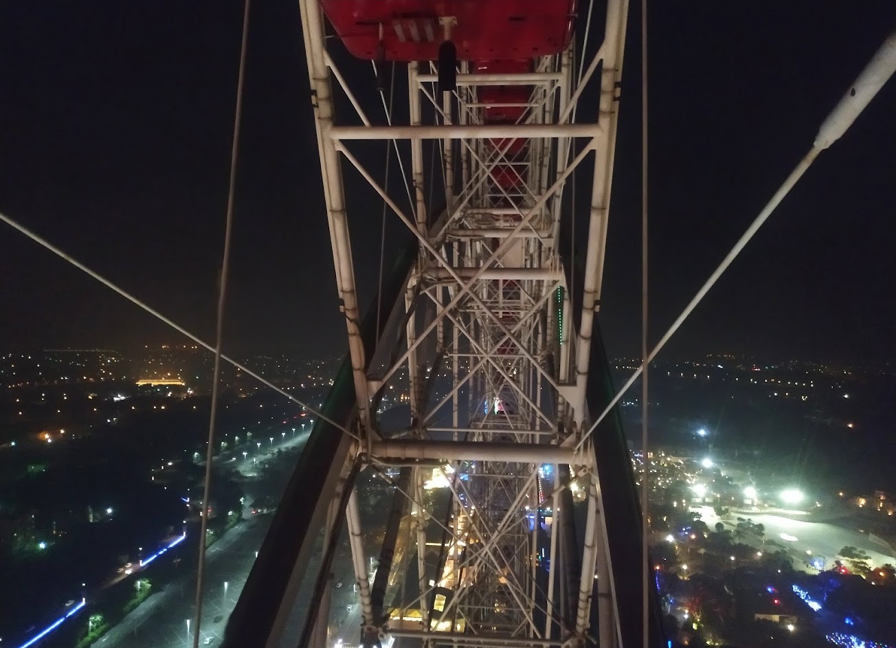 摩天輪有120公尺高,全票300滿貴的,有消費發票的話優待票250。坐一圈25分鐘。