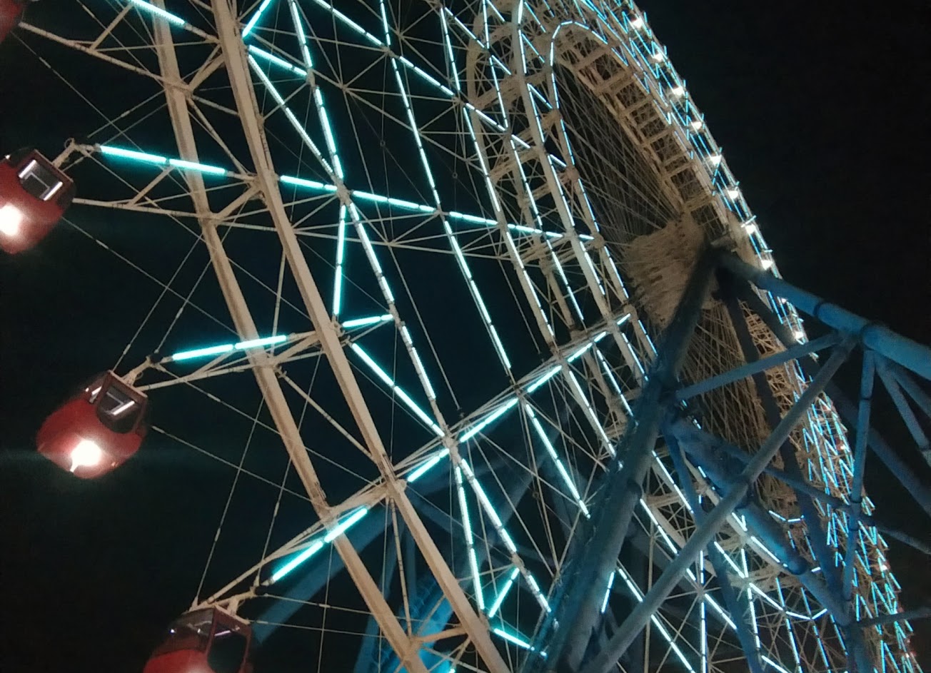 很漂亮,吃飯選擇多但分散多棟建築物,摩天輪下午2點才開,早上去會撲空!