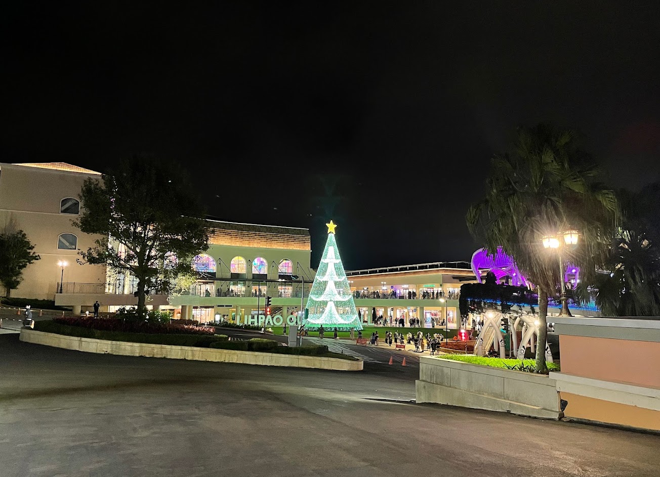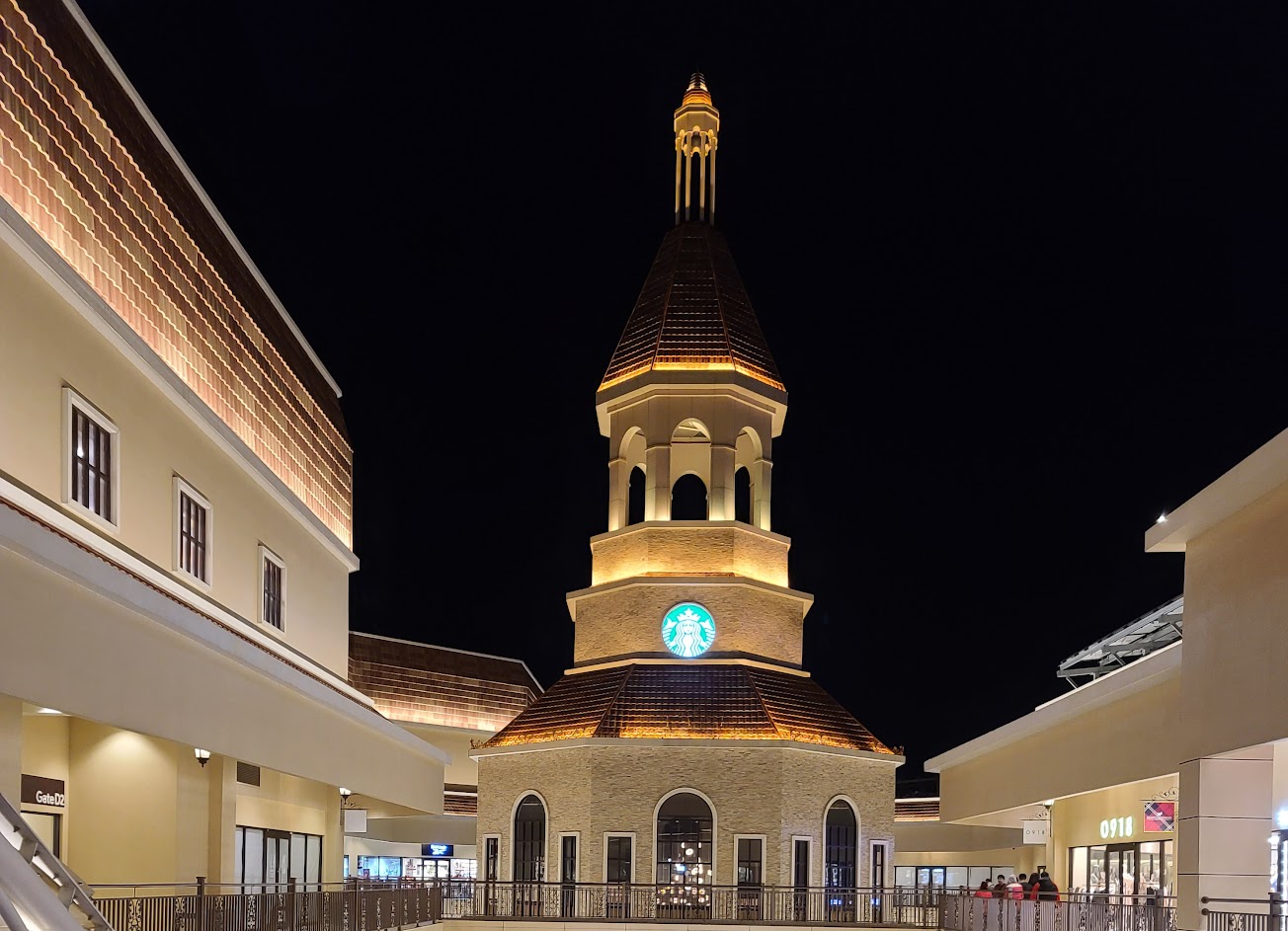 現在又有新的二期更多了很多店家及造型星巴克鐘樓及大水池!大水池整點有水景表演!美食街、美食餐廳?很多,建議可以先Google一下或是下車就先拿Map,一期、二期室橋有通,可是停車場沒有通哦!所以你要停在一期或是二期車子?要想清楚