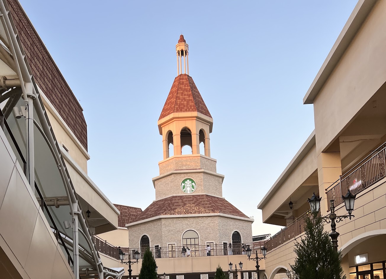 很有特色的景點,內部是星巴克咖啡,可以在鍾型樓內喝咖啡,是休憩區。