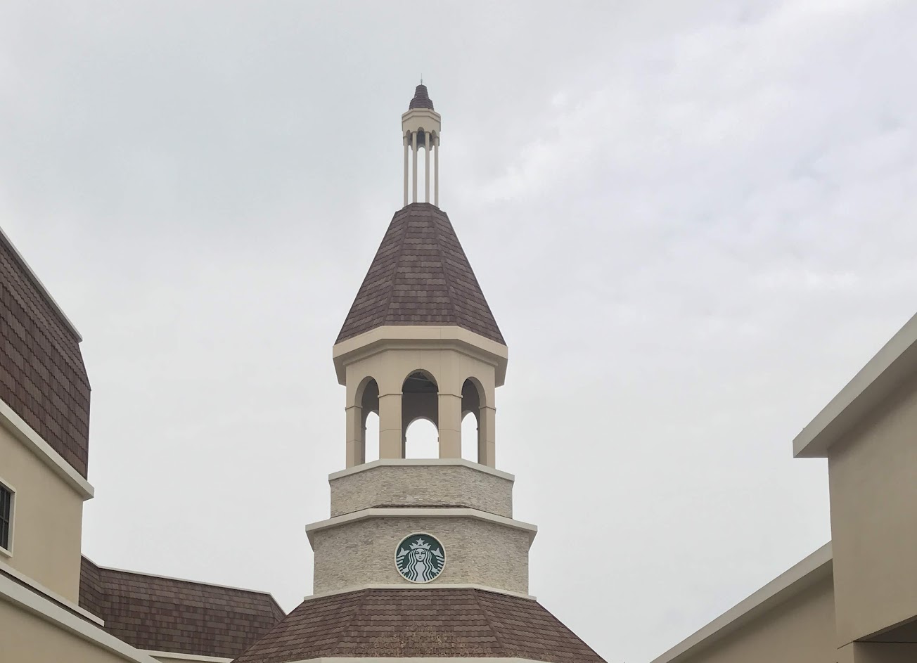 麗寶鐘樓門市進駐麗寶outlet mall二期,整體依據商場整體設計規劃,以鐘樓造型為建物外觀,屋緣處美麗的星巴克女神佇立於中心!
