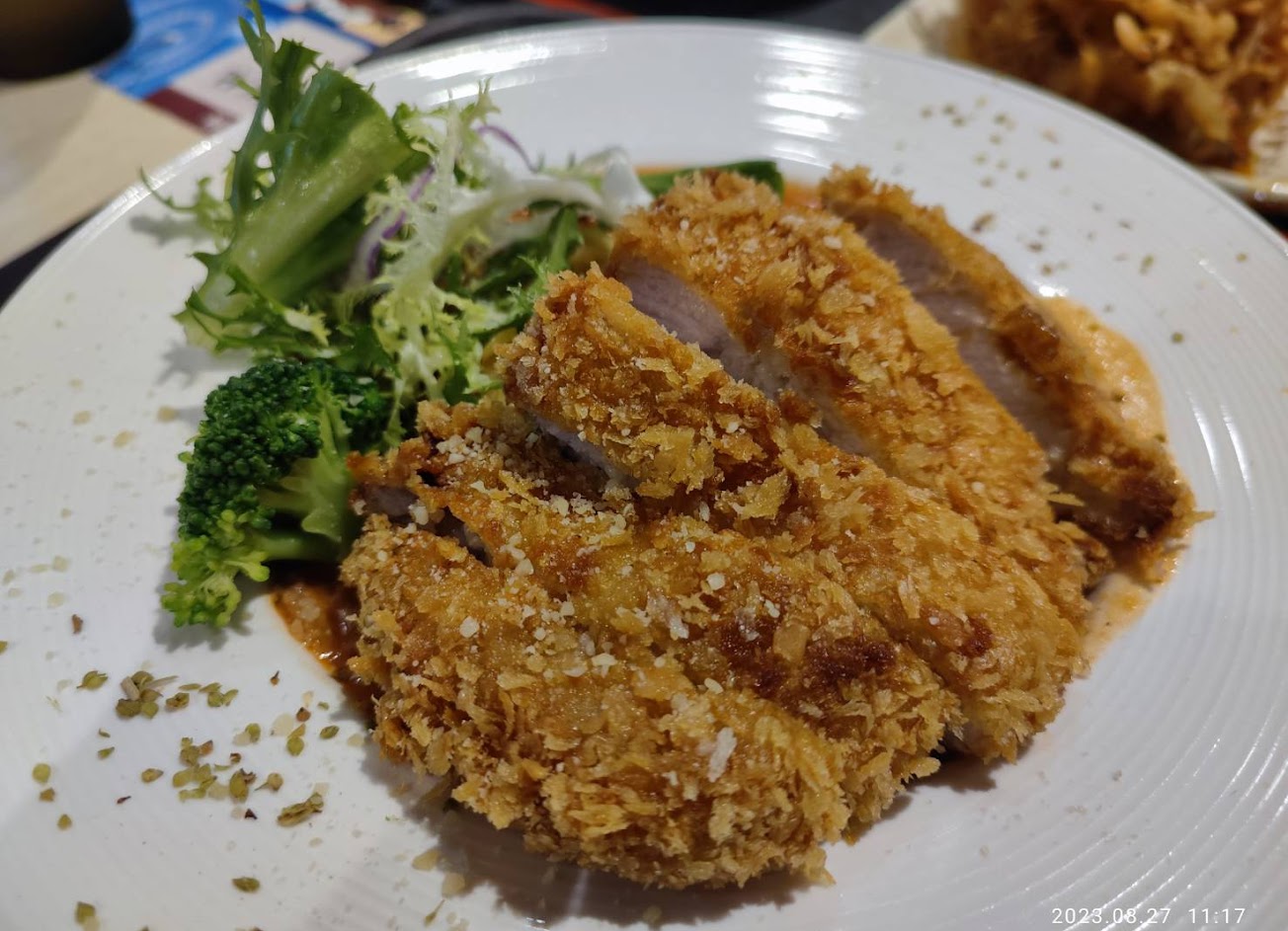 炸豬排意外的軟嫩,沒吃過這麼好入口的,沒筋筋拉拉,小孩很適合!白醬的風味濃郁,整體是意外的非常好吃?