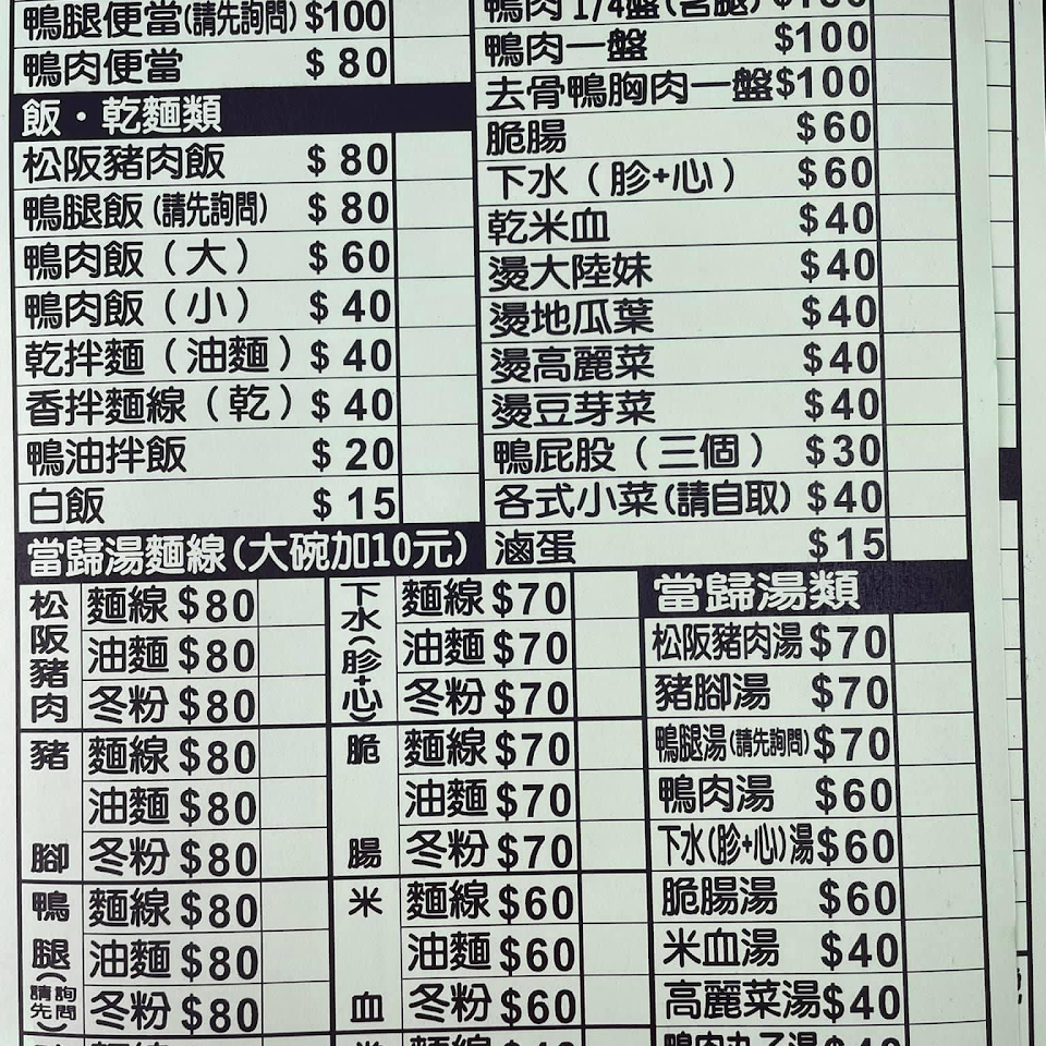 鴨肉飯好吃,松阪豬肉湯:肉很嫩很新鮮,湯頭不會清淡無味,有甜味,可以續湯,態度很好
