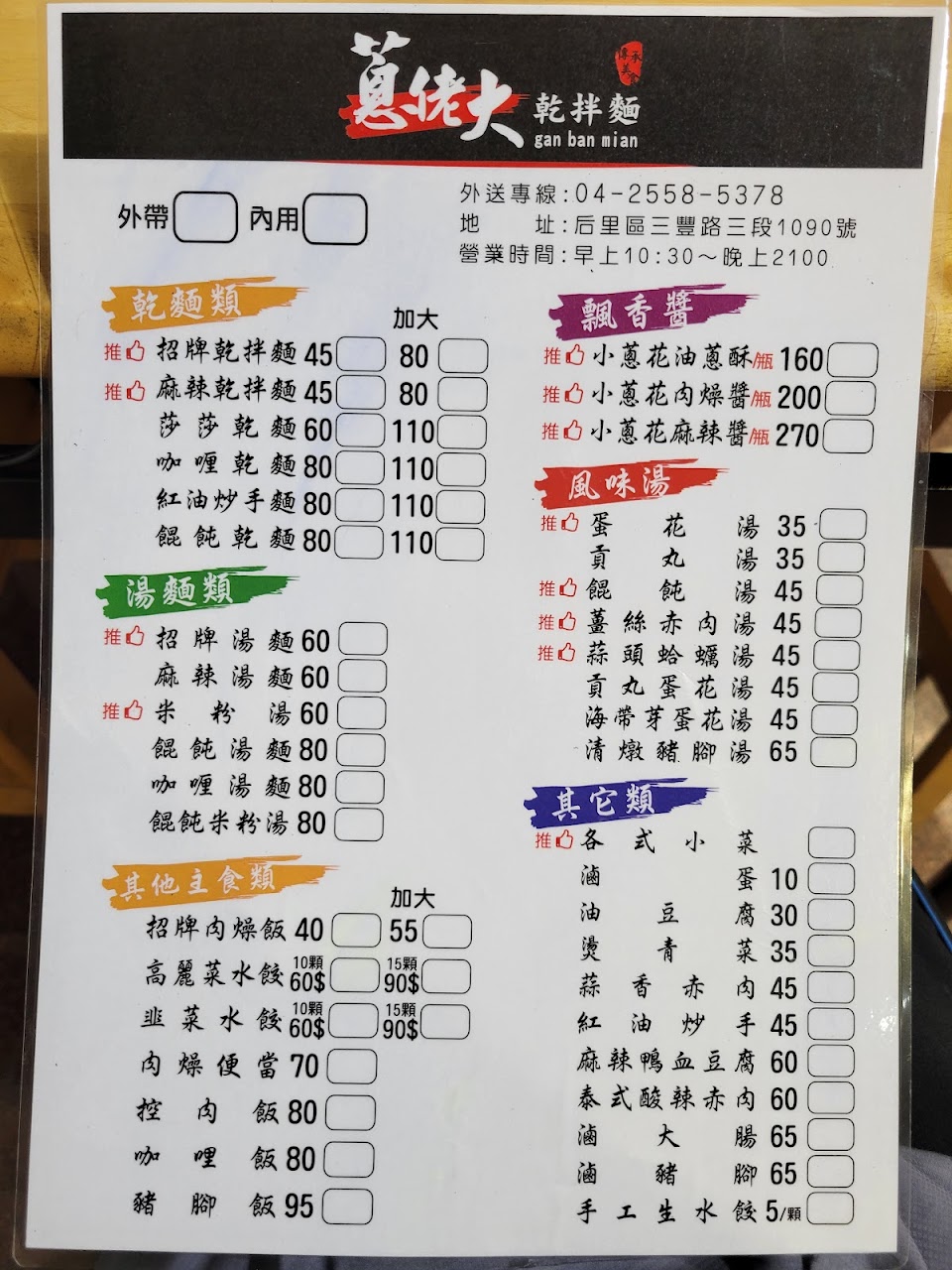 2024最新在地推薦餐廳的菜單_蔥佬大乾拌麵【后里美食|后里小吃|后里餐廳|小吃店|晚餐】的菜單、圖片