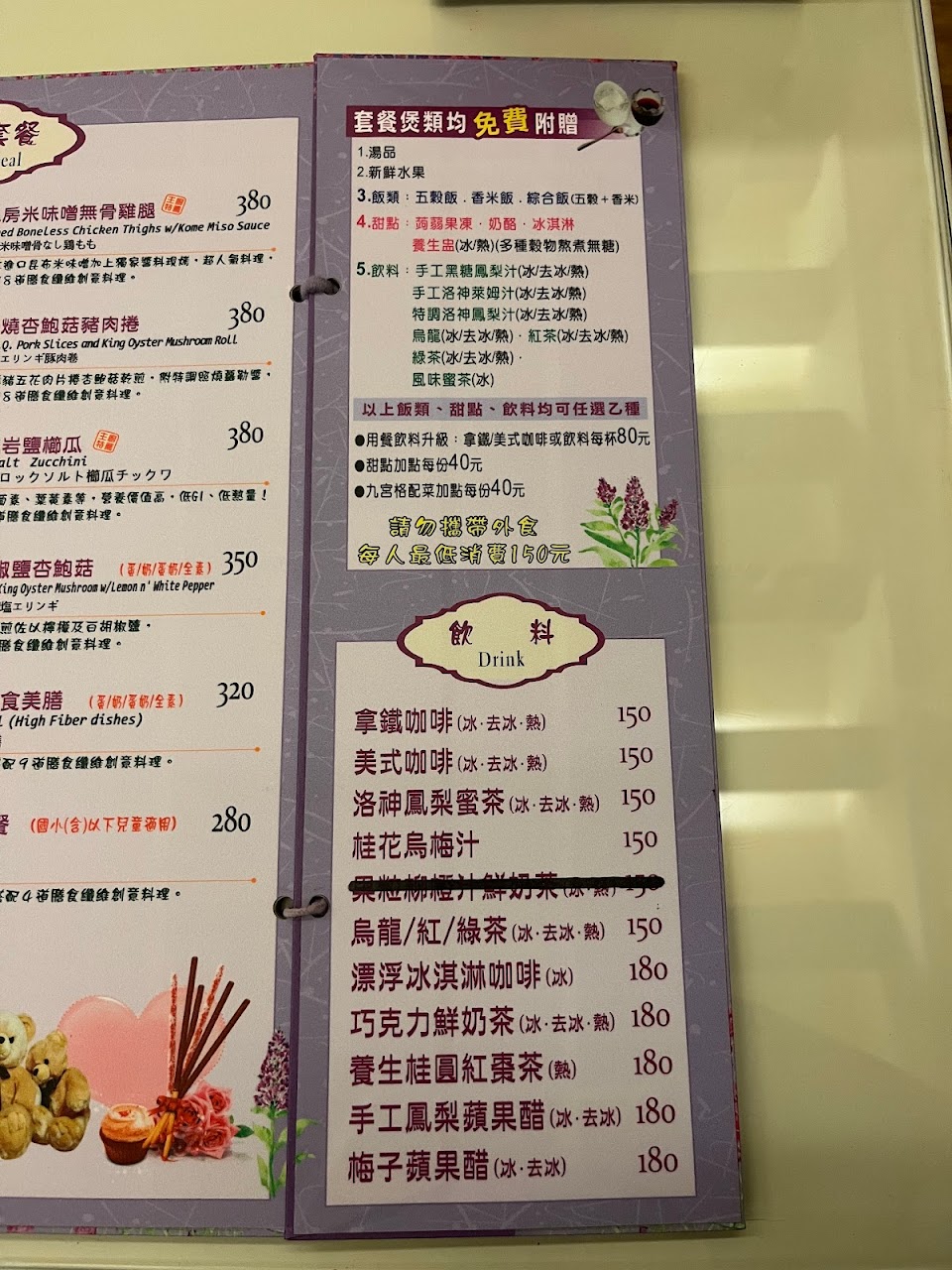 很棒的用餐環境, 小鮮肉服務人員,老闆超親切的,餐點強調的是少油煙料理, 超健康無負擔的料理,推經典套餐九宮格,開了那麼多年,二樓店內依舊像剛開始一樣很新,還可以聽老闆跟店員彈鋼琴現代流行的歌曲,很適合來聚餐的場所,一樓的KTV空間,可以真人伴奏,十人以上用餐可以免費使用, 或另外付費會提供不限量飲料、爆米花